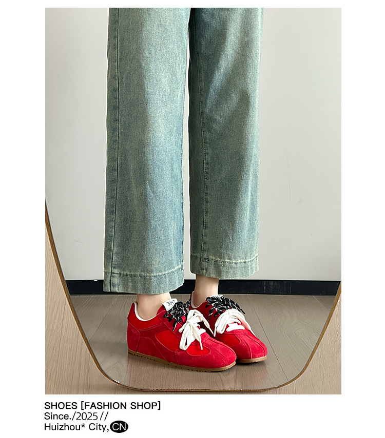 포도엄마 스퀘어토 배색 더블끈 아가드 트레이닝슈즈 가죽 소프트솔 통근 소프트 캐주얼 스니커즈 여성화 가을스토어 가기