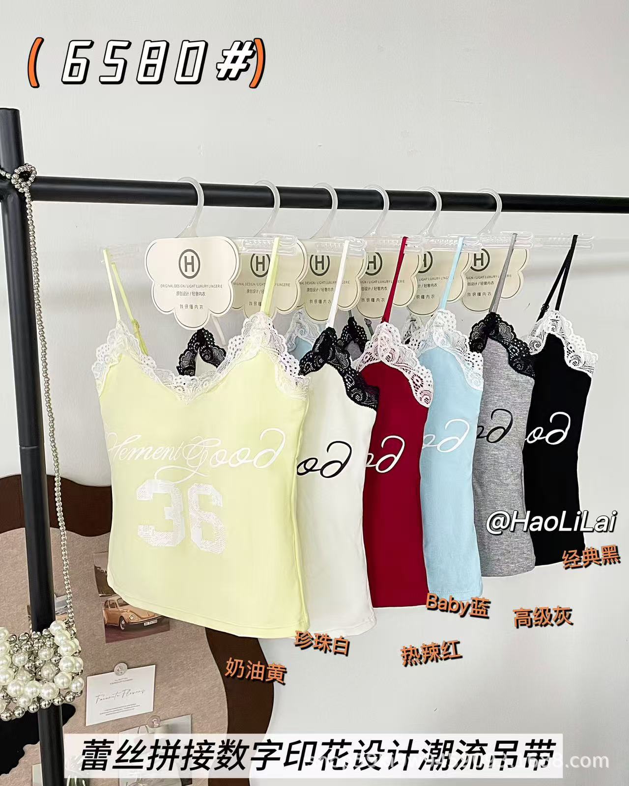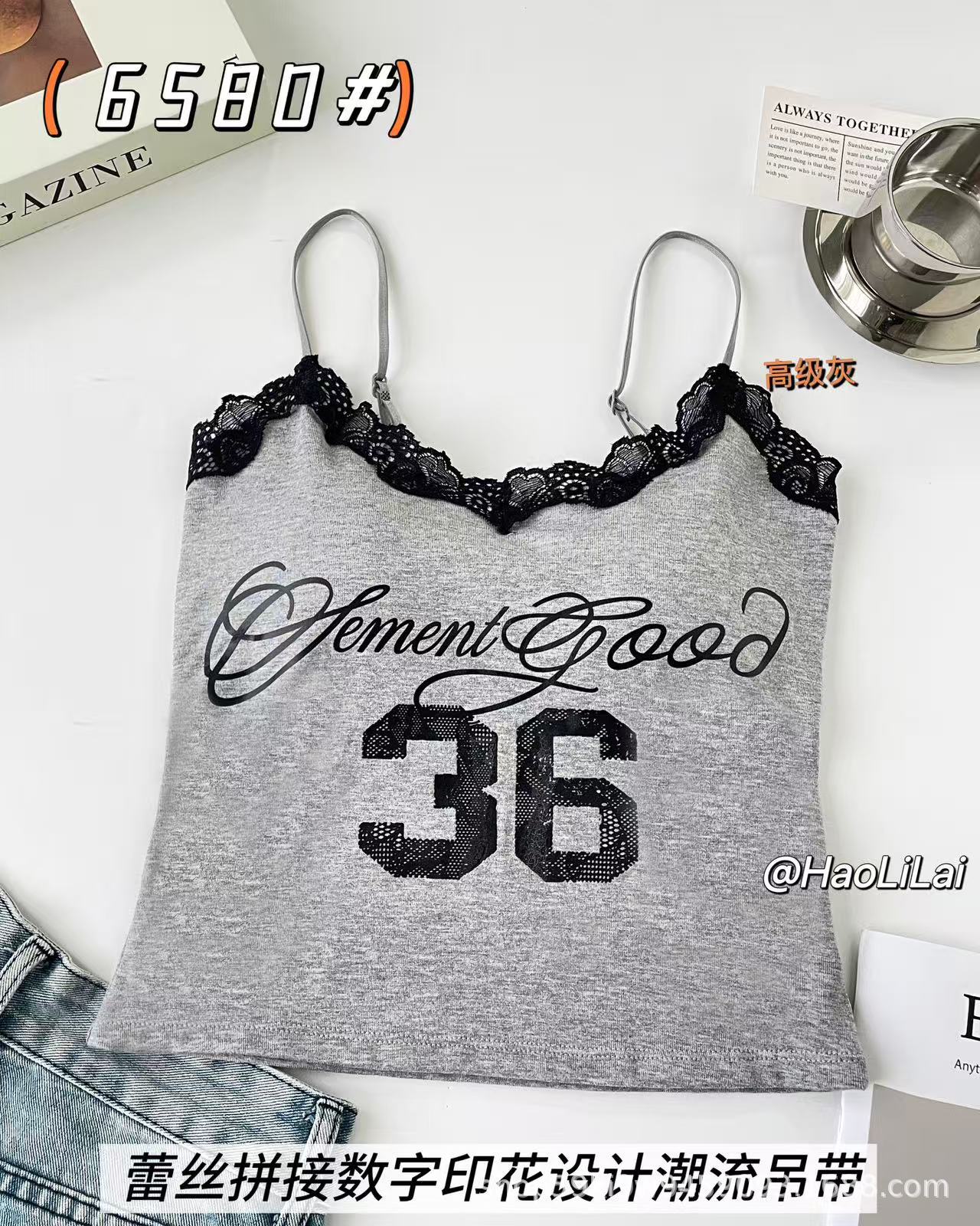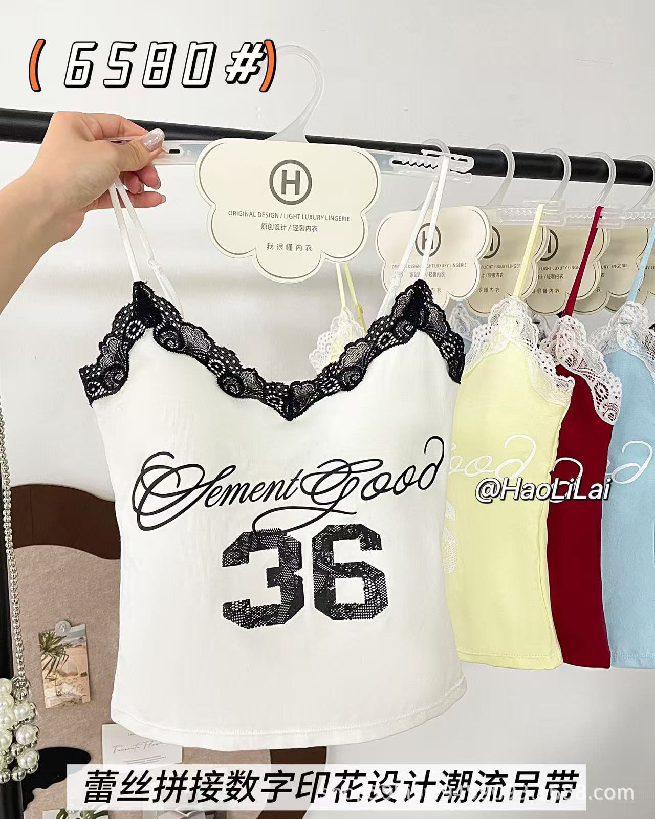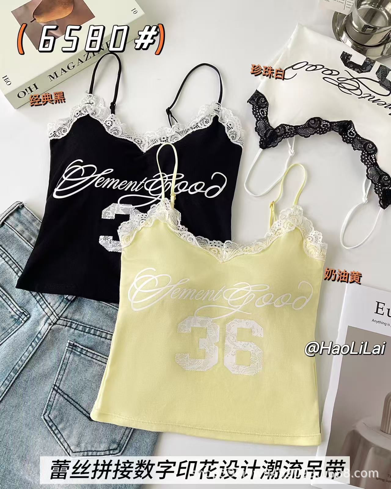6580 # 여름 신상 레이스 스플라이싱 디지털 프린트 스트리트 트렌드는 외부 및 내부 착용을 위한 가슴 패드가 내장된 작은 조끼입니다.스토어 가기