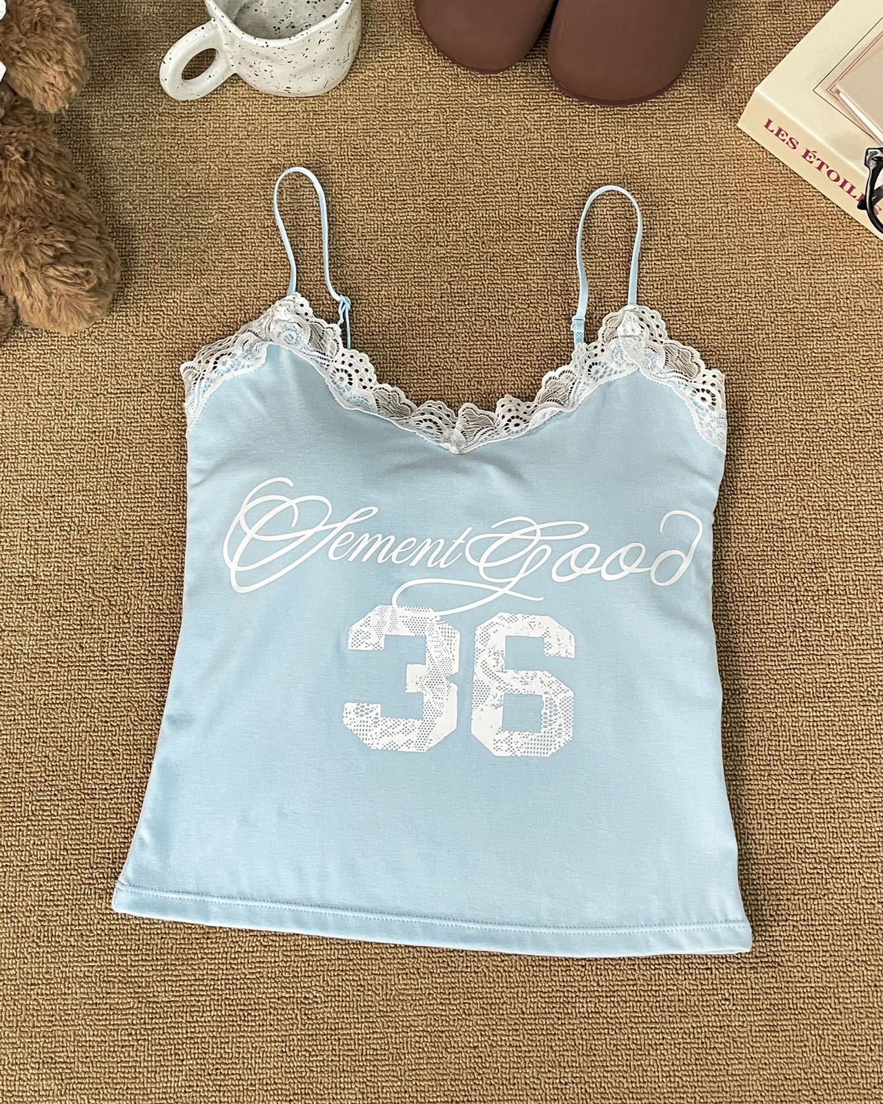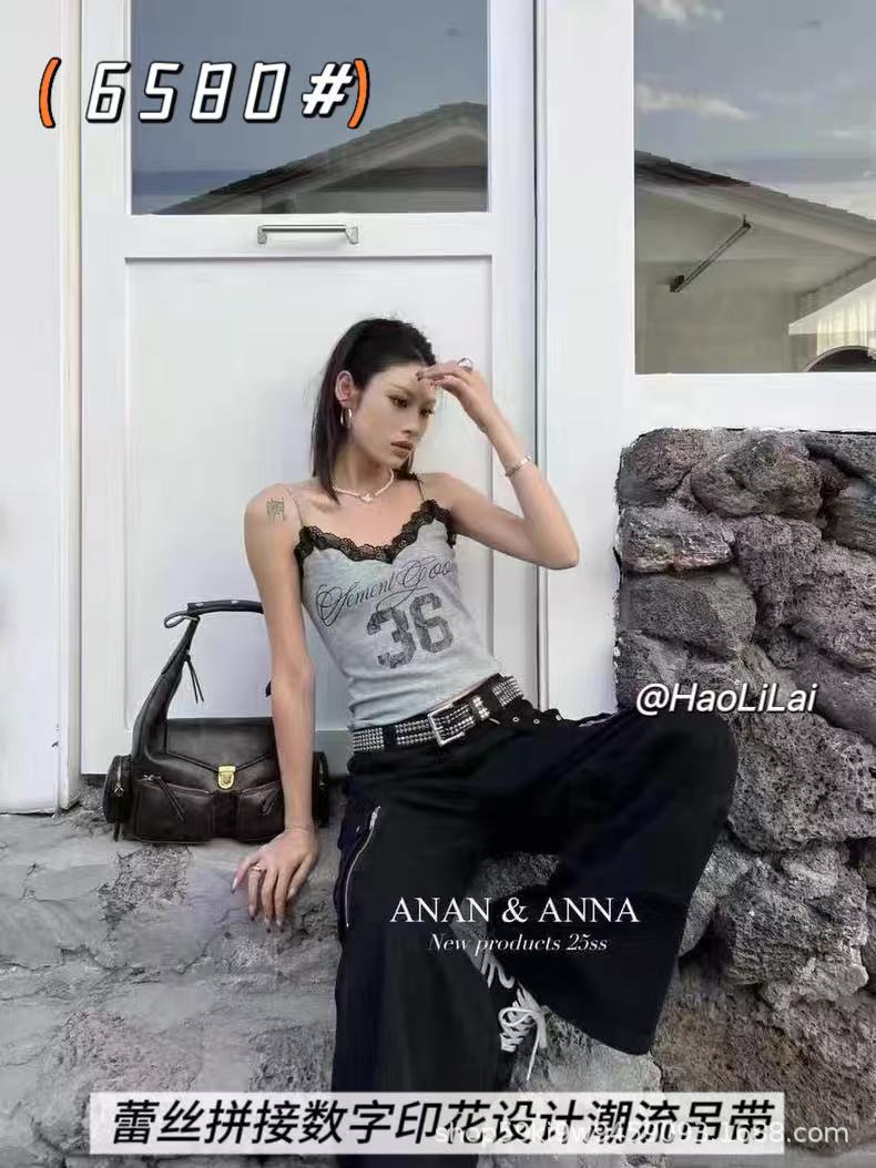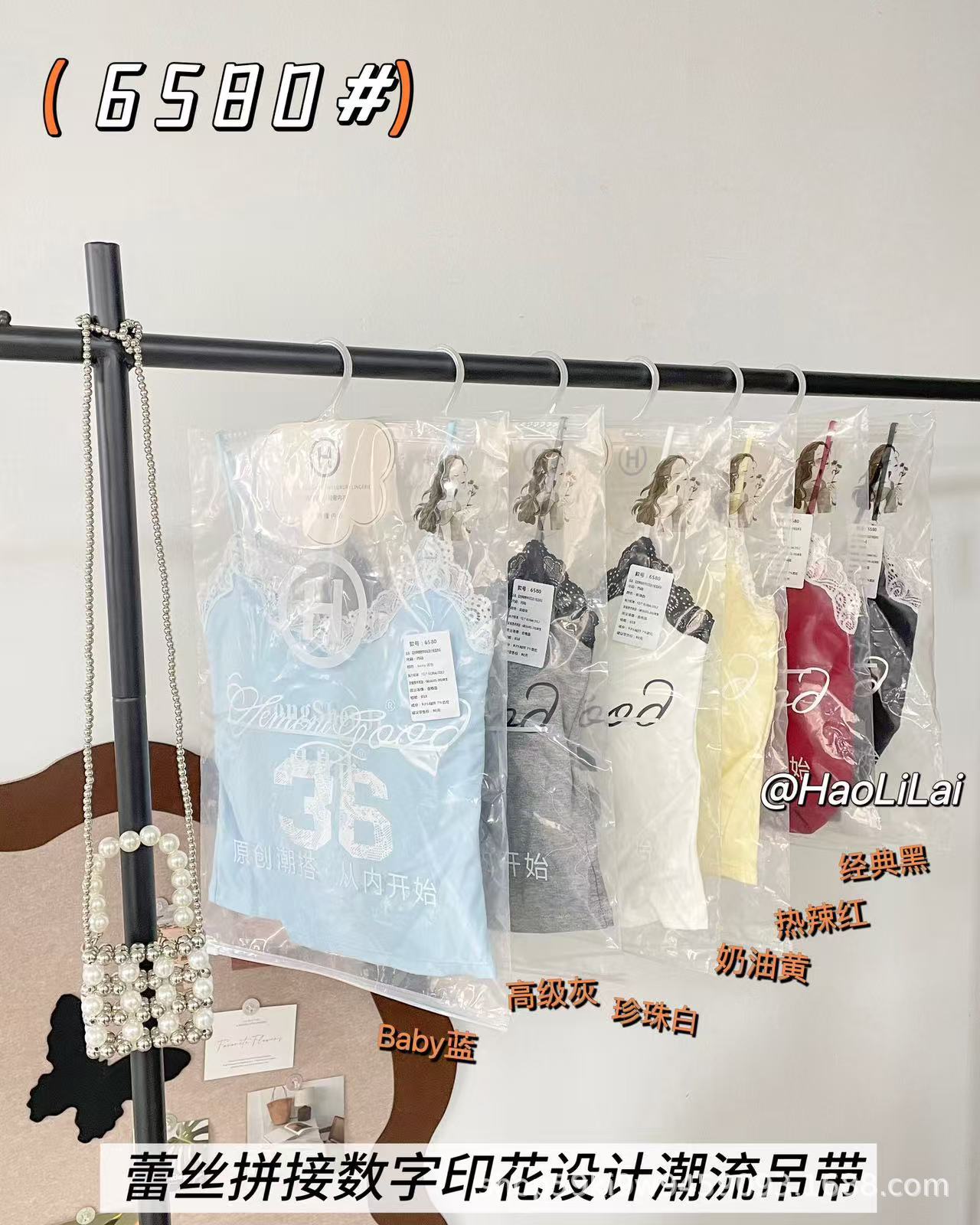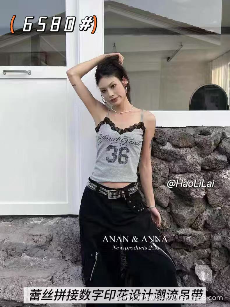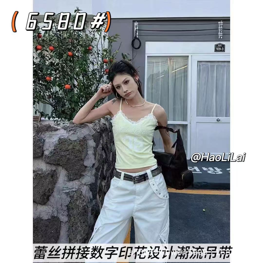 6580 # 여름 신상 레이스 스플라이싱 디지털 프린트 스트리트 트렌드는 외부 및 내부 착용을 위한 가슴 패드가 내장된 작은 조끼입니다.스토어 가기