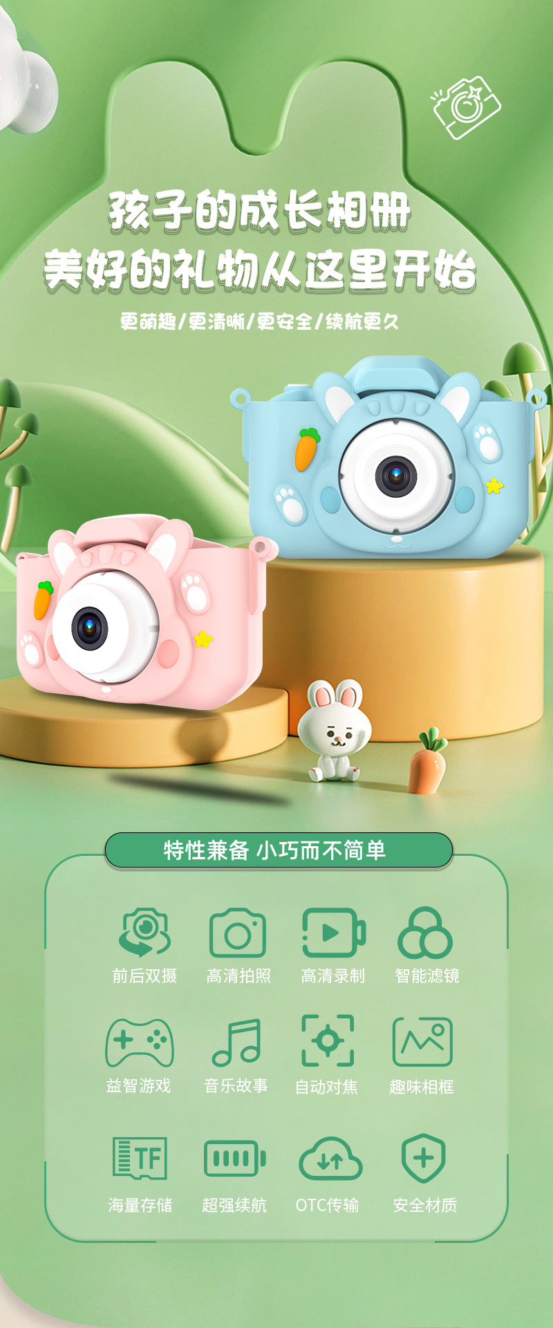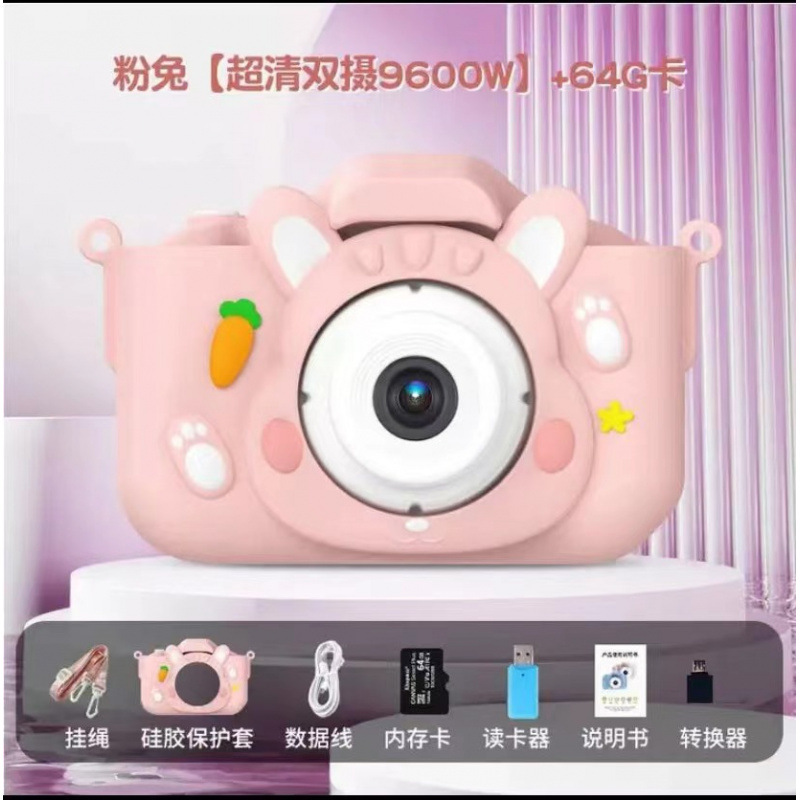 • (핑크두두토끼) HD 듀얼 카메라 9600W+64G 메모리 카드