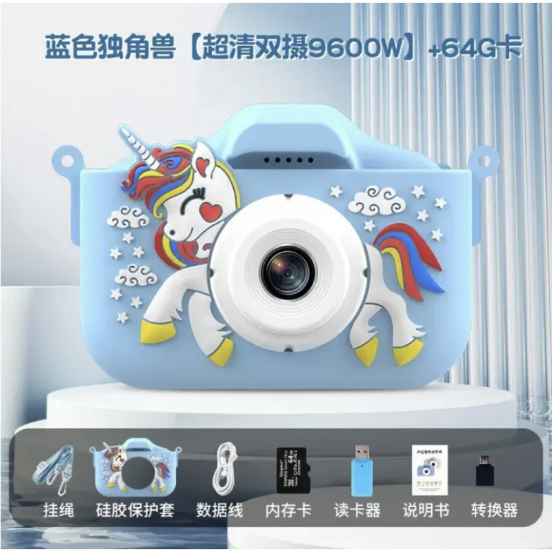 • 유니콘 핑크) HD 듀얼 카메라 9600W+64G 메모리 카드