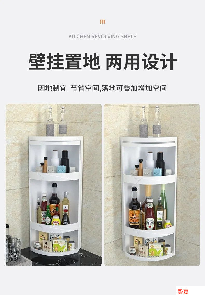 주방 수납 선반 회전 조미료 조미료 수납 캐비닛 벽걸이 형 조리대 코너 수납 선반 다층 설치 없음스토어 가기