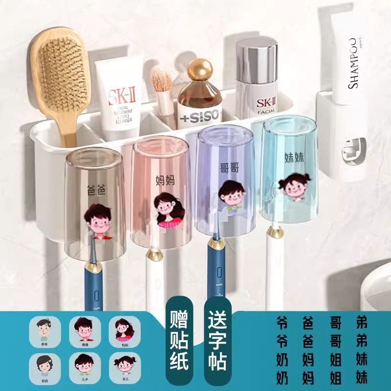 • 업그레이드된 두께의 [칫솔꽂이 4구 + 치약 짜개] 행복한 4인 가족 세트⚑♜