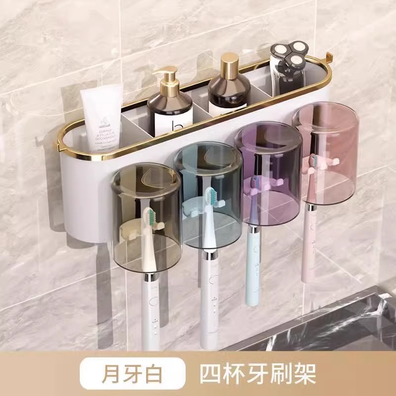 • 2024년 신상 크림톤 칫솔꽂이 - 컵 4개 + 치약 짜개⚑♜