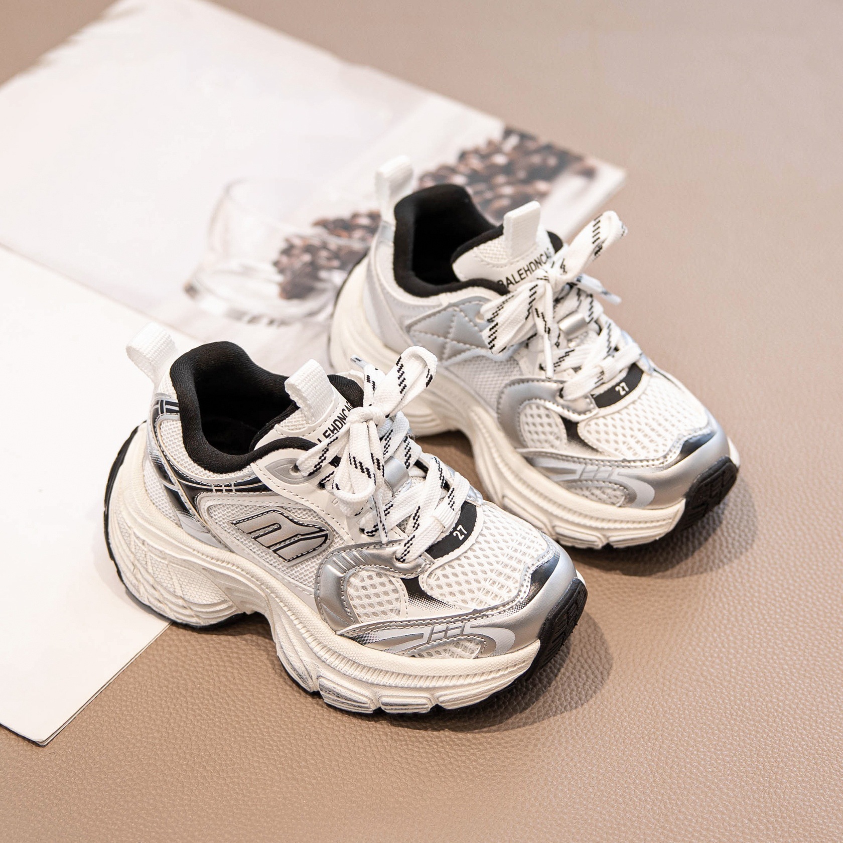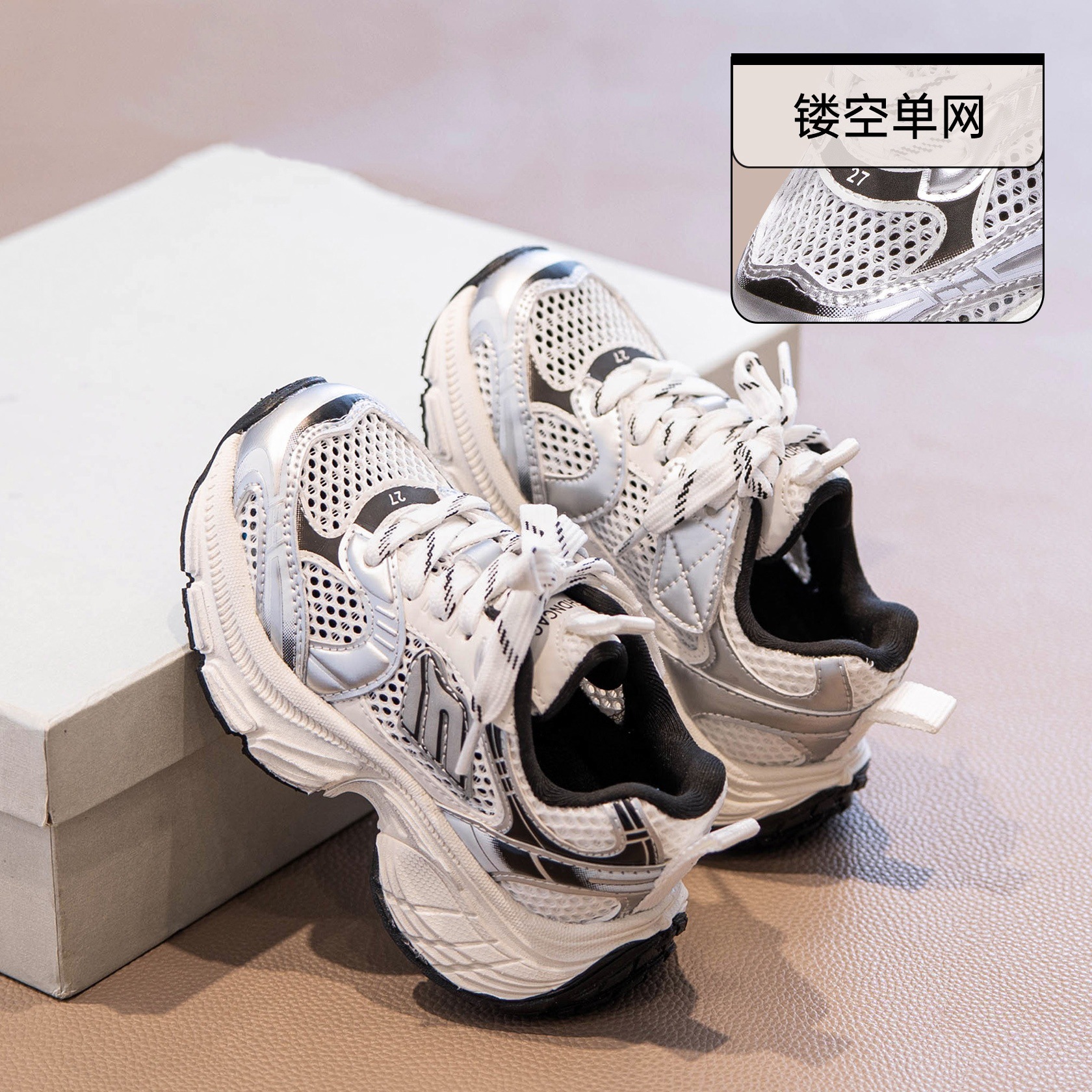 새로운 2025 봄 아동 신발, 가벼운 여아 아빠 신발, 중대형 아동 신발, 검정색 부드러운 밑창 소년 운동화