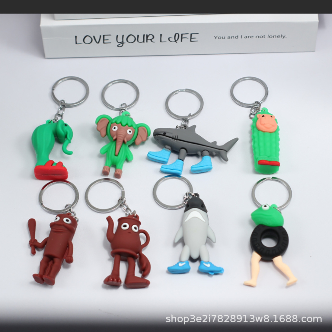 만화 국경 간 산과 바다 동물 키 체인 펜던트 PVC 나무 막대 신발을 신은 사람 상어 인형 모델 장식품스토어 가기
