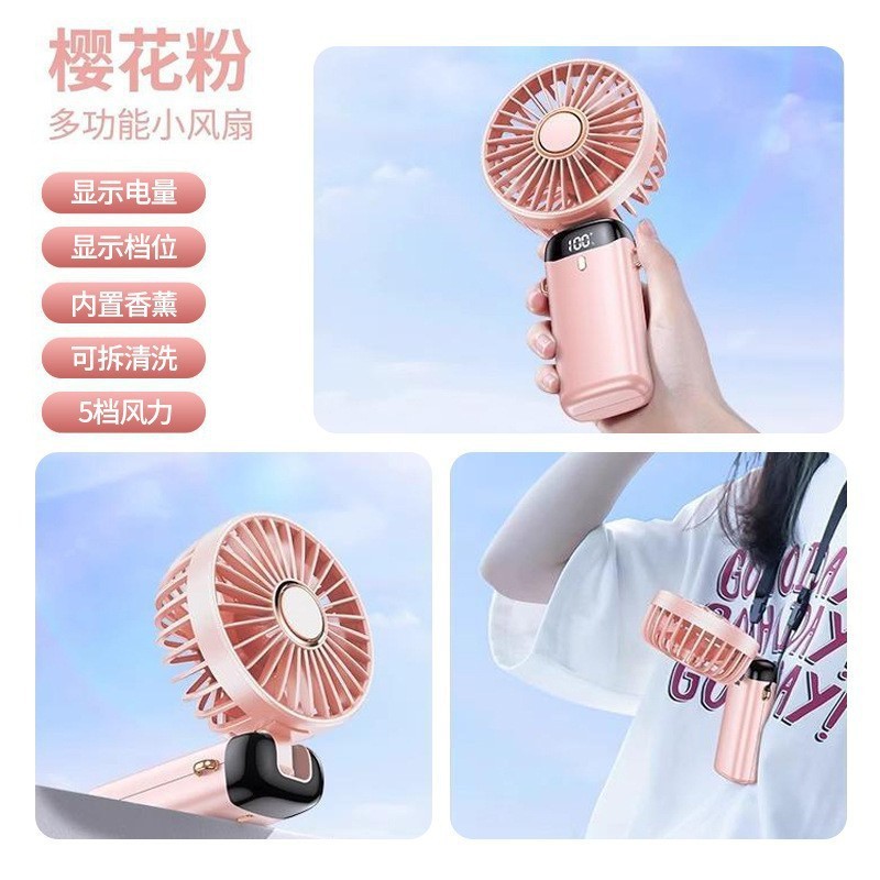 새로운 USB 휴대용 팬 미니 휴대용 데스크탑 접이식 소형 팬 교수형 목 디지털 디스플레이 아로마 테라피 소형 선풍기