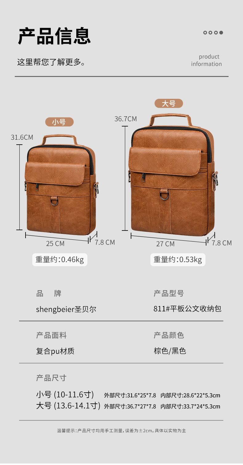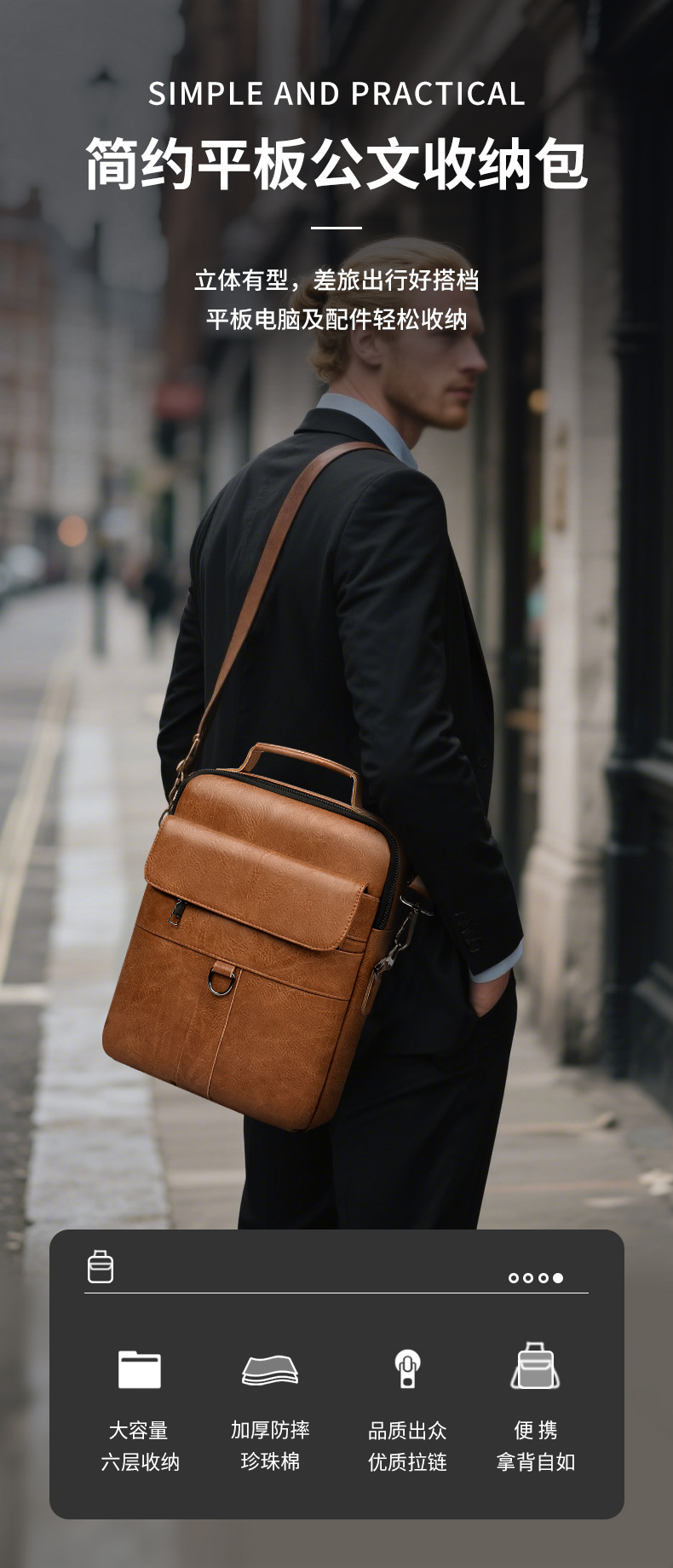 유럽과 미국의 레트로 스타일 비즈니스 태블릿 가방 도매 대용량 방수 PU 가죽 숄더백 및 핸드백 태블릿 수납 가방스토어 가기