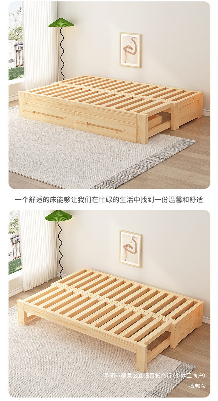 북유럽 단단한 나무 다기능 접이식 풀 아웃 침대 소파 침대 이중 목적 텔레스코픽 침대 다다미 침대 거실 가구 재고 있음스토어 가기