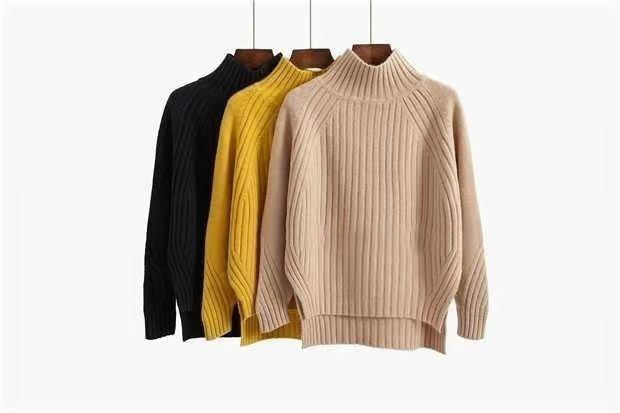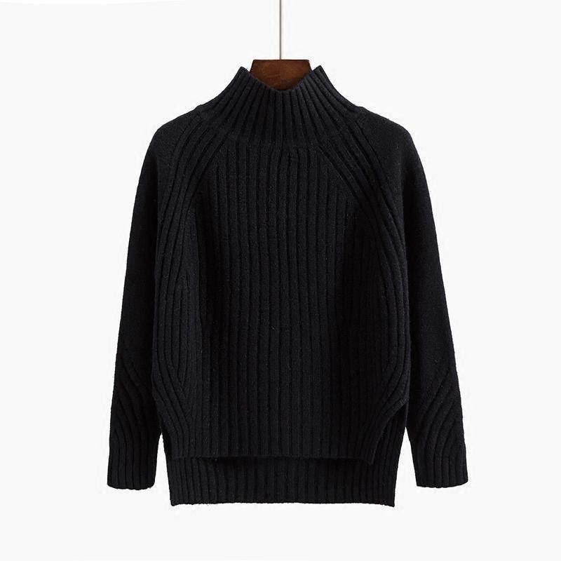 가을 겨울 여성용 터틀넥 스웨터, 루즈한 니트 스웨터, 한국식 검은색 긴팔 앞이 짧고 뒤가 긴 두꺼운 바닥 셔츠, 트렌디함스토어 가기