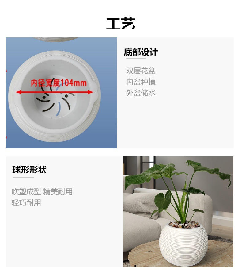 게으른 사람들의 자체 흡수 화분 데스크탑 화분 플라스틱 두꺼운 수지 토양 재배 수경 화분 크리 에이 티브 수지 볼 화분스토어 가기