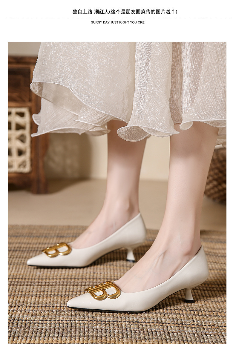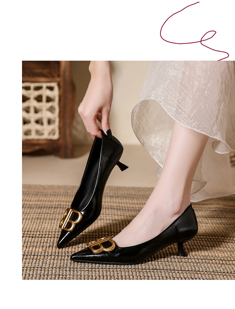 소형 사이즈 313 유럽과 미국 스타일의 뾰족한 더블 B 버클 스틸레토 하이힐 봄과 가을 새로운 스타일의 우아하고 다재다능한 여성용 펌프스 신발스토어 가기