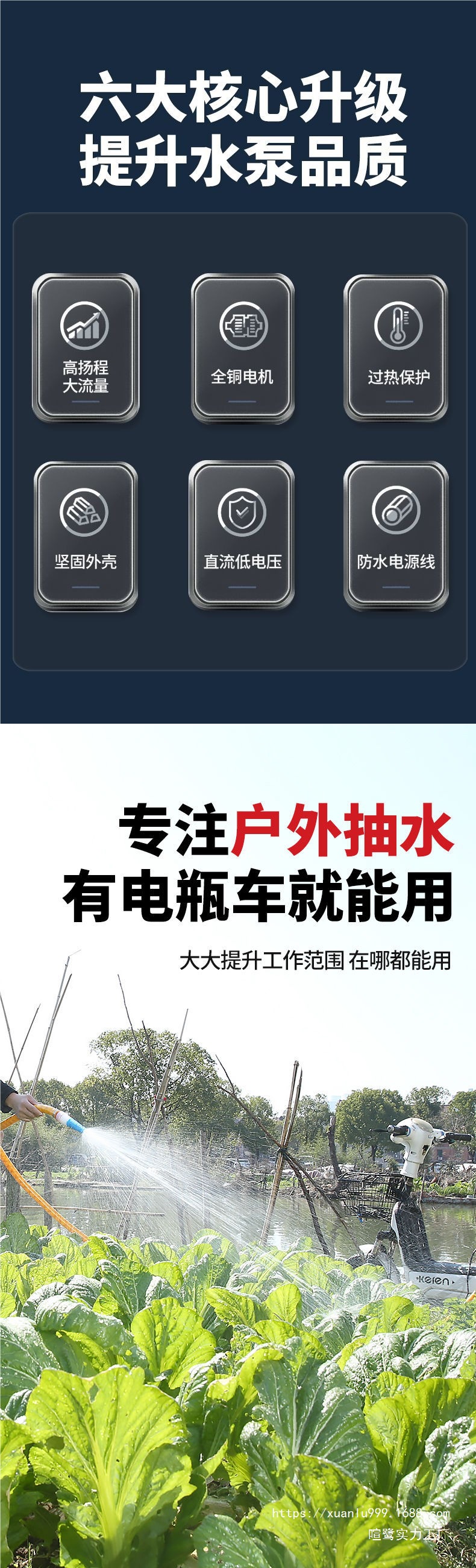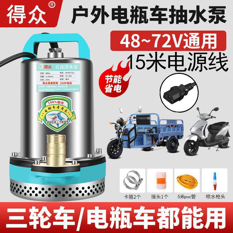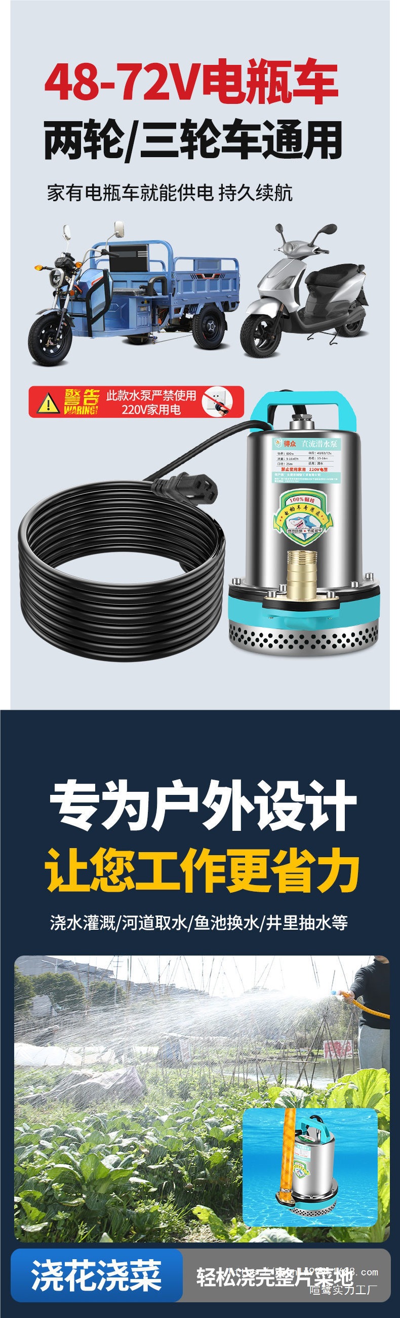 DC 수중 펌프 48v60v72v 범용 전기 자동차 전기 세발자전거 플러그인 배터리 자동차 펌핑 펌프 농업스토어 가기