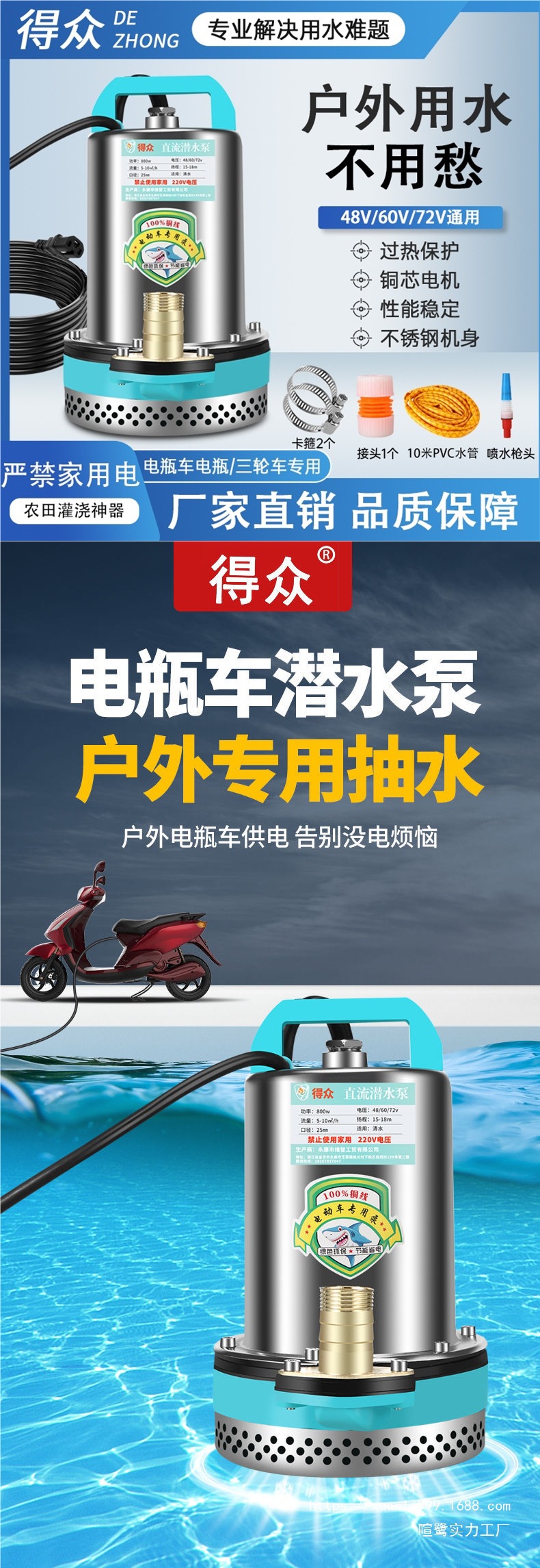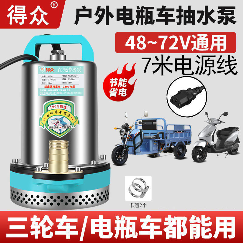 DC 수중 펌프 48v60v72v 범용 전기 자동차 전기 세발자전거 플러그인 배터리 자동차 펌핑 펌프 농업