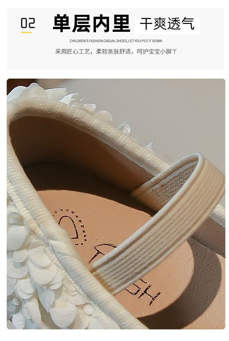 여자 꽃 공주 신발 2025 봄과 가을 새로운 여자 아기 신발 비니 신발 숲 스타일 유행 간단한 작은 가죽 신발스토어 가기