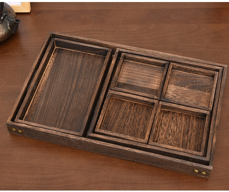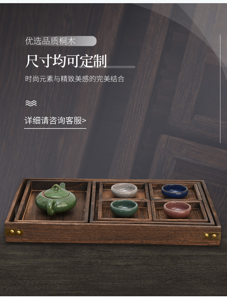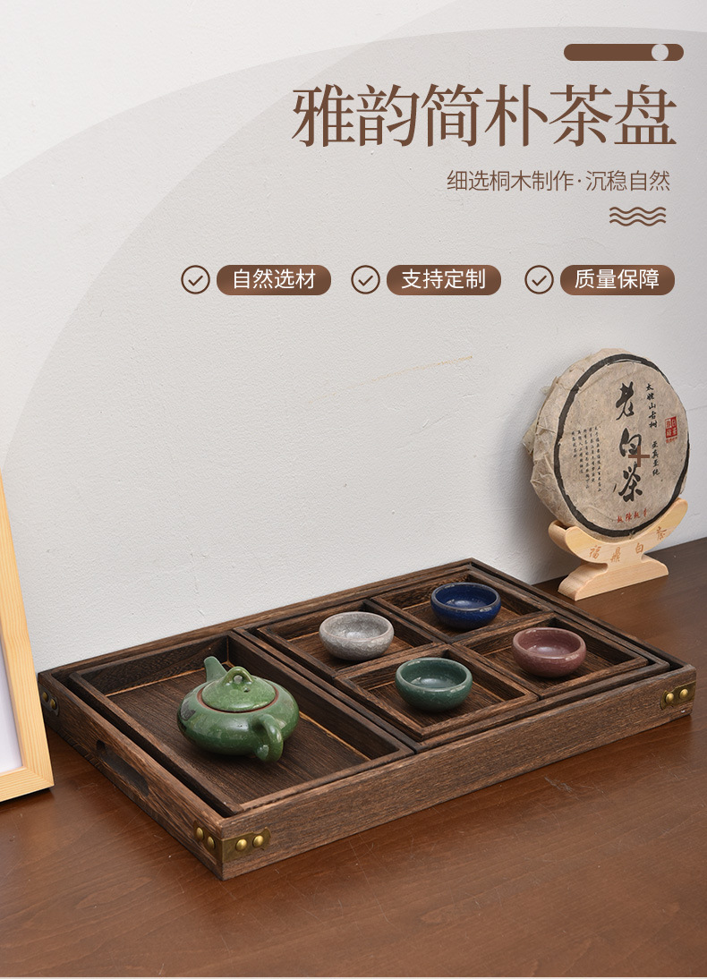 일본식 원목 오동나무 7피스 차 트레이 중국식 가정용 간단한 건조 찻잔 트레이 원목 차 세트 트레이