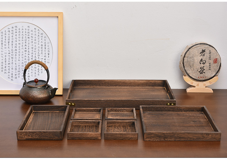 일본식 원목 오동나무 7피스 차 트레이 중국식 가정용 간단한 건조 찻잔 트레이 원목 차 세트 트레이스토어 가기