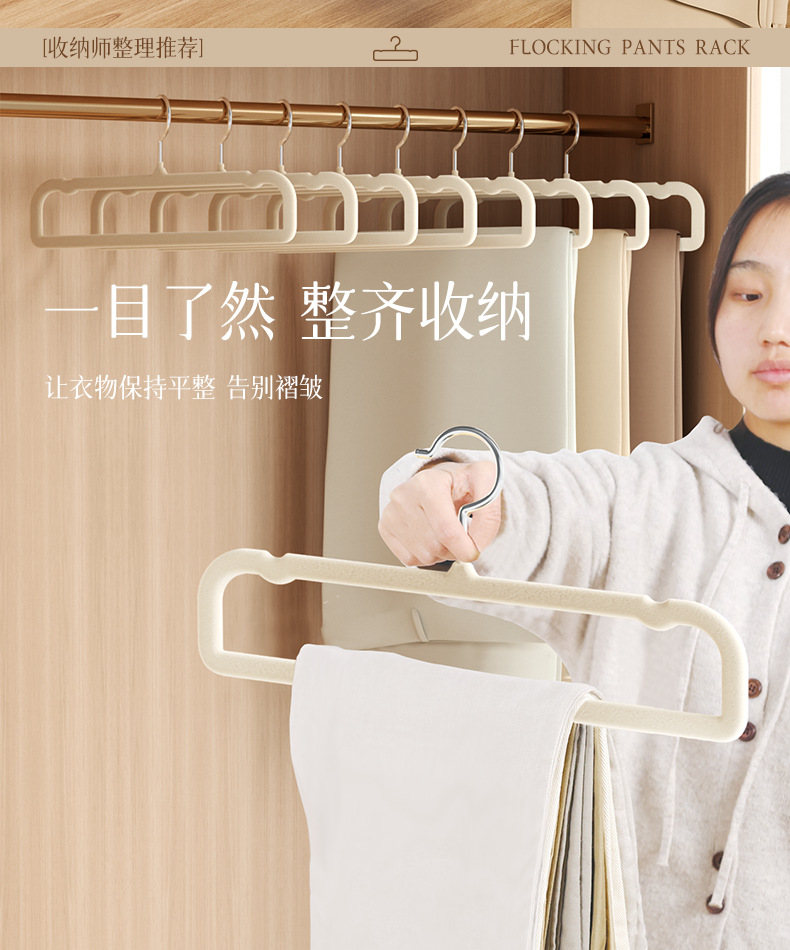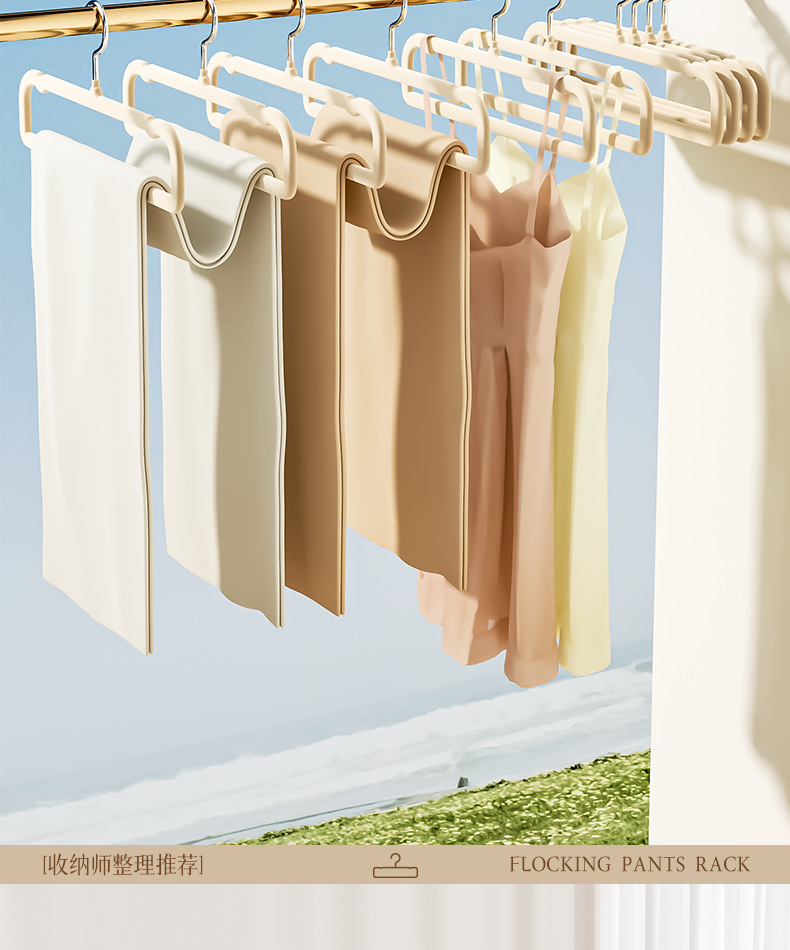 가정용 플록 팬츠 랙, 흔적 없는 미끄럼 방지, 다기능 바지 걸이, 옷걸이, 옷장 공간 절약형 보관 유물 도매