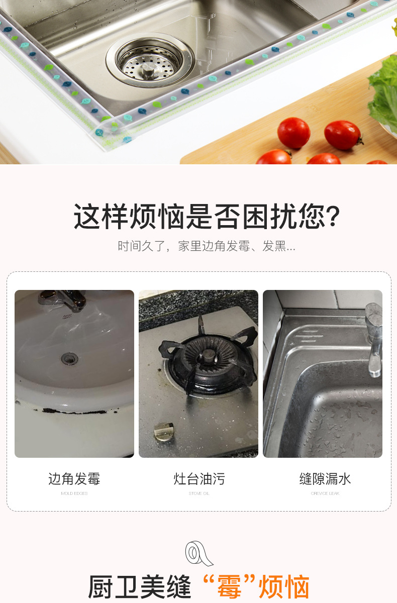 주방 싱크대, 욕실 조리대, 벽 코너 틈새, 욕실 세면대 패드, 욕실 방수 방수 스트립용 아름다운 씰링 스티커스토어 가기