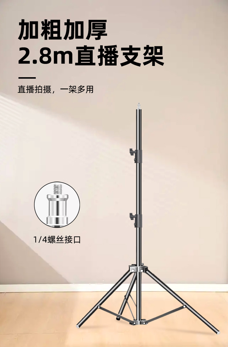 휴대 전화 라이브 사진 필 라이트 스탠드 야외 사진 스튜디오 라이트 스탠드 알루미늄 합금 2.8m 두꺼운 플로어 삼각대