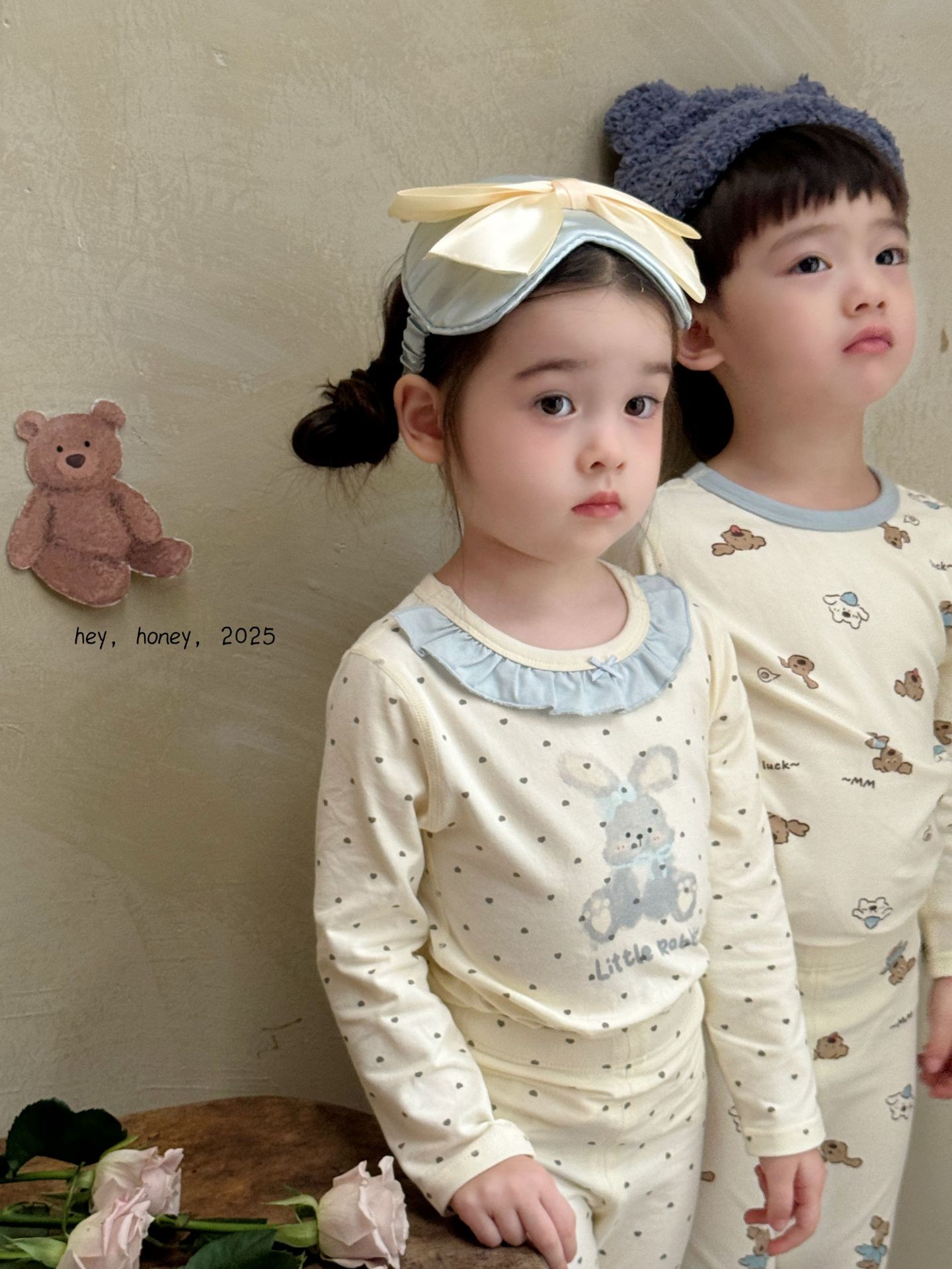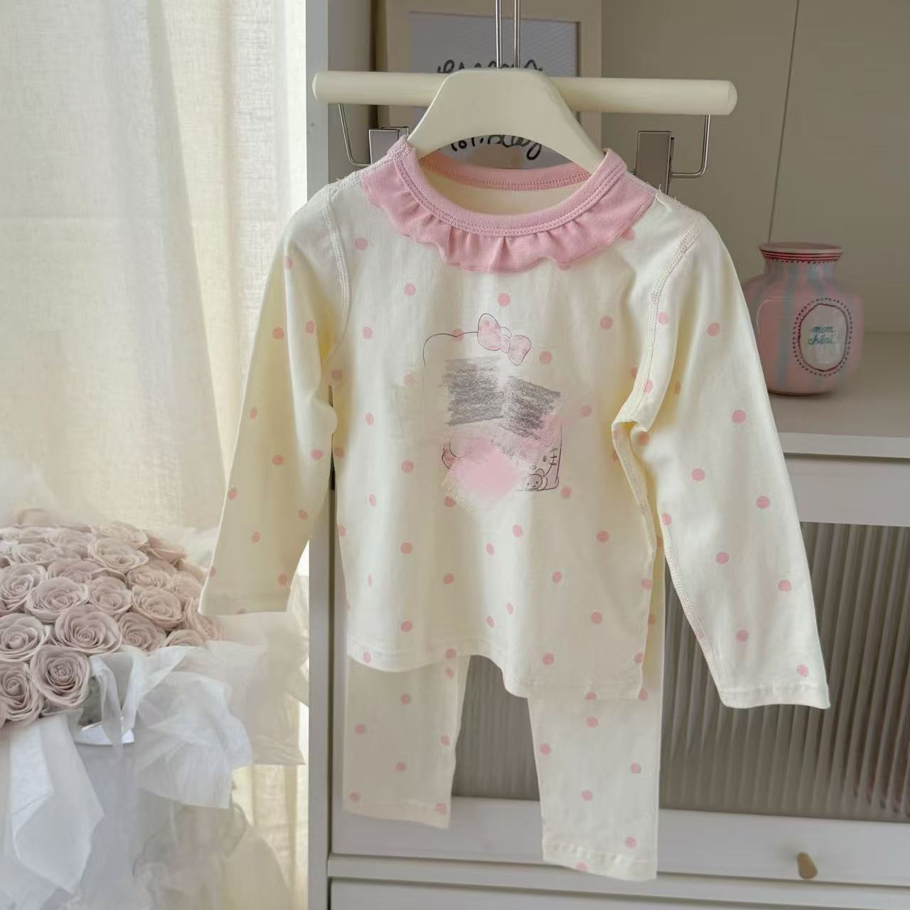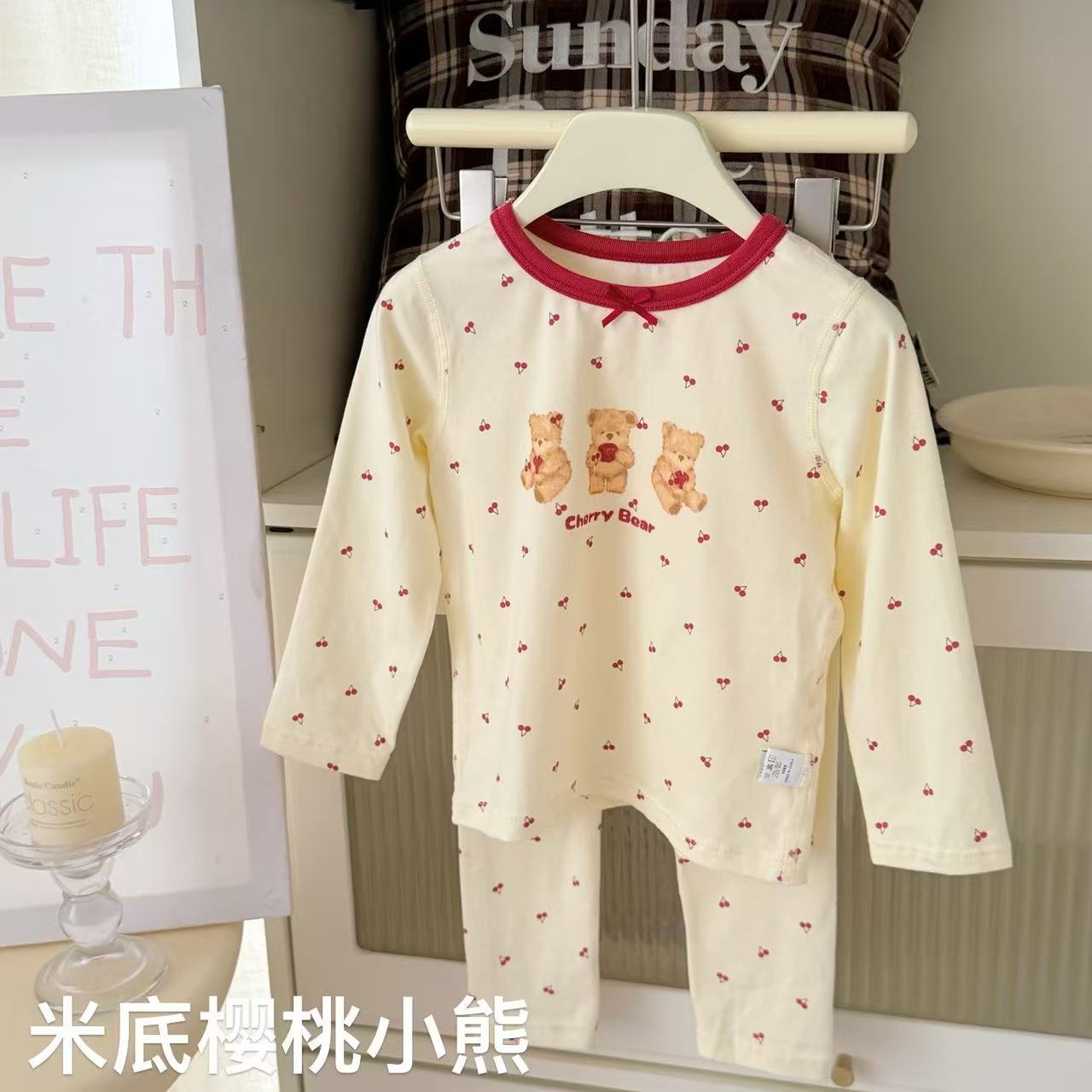 큰 롤과 작은 롤 Heyhoney25 라이크라 코튼 소년 소녀 가을 속옷 프린트 홈웨어 잠옷 투피스 세트