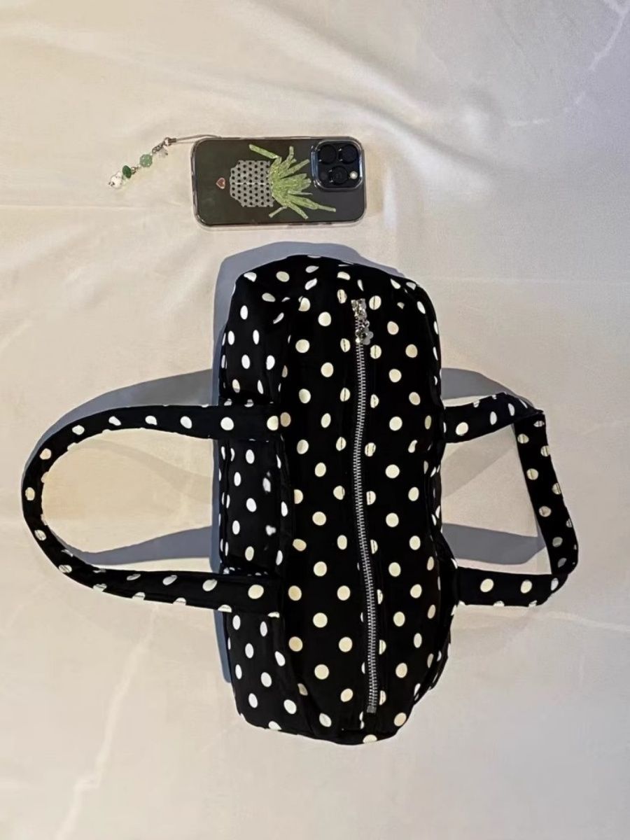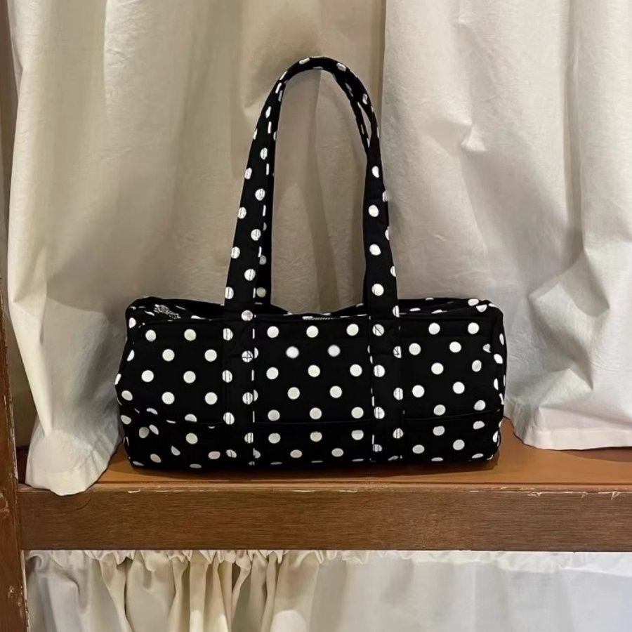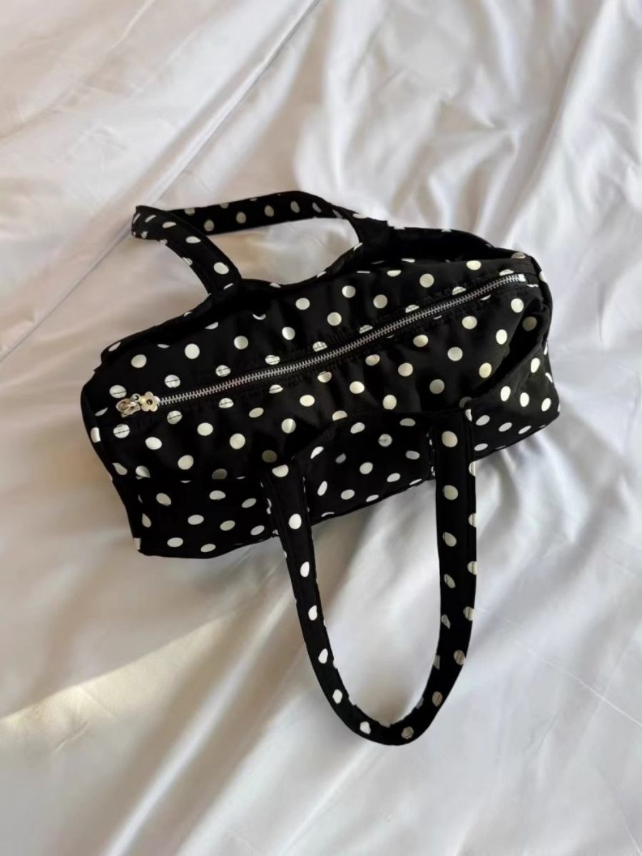 2025 새로운 한국 스타일 귀여운 스타일 흑백 폴카 도트 대용량 숄더 백 캐주얼 다목적 여행 핸드백 여성용