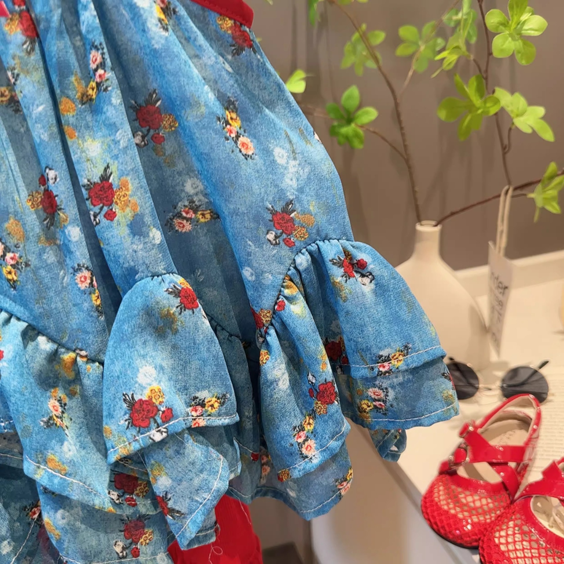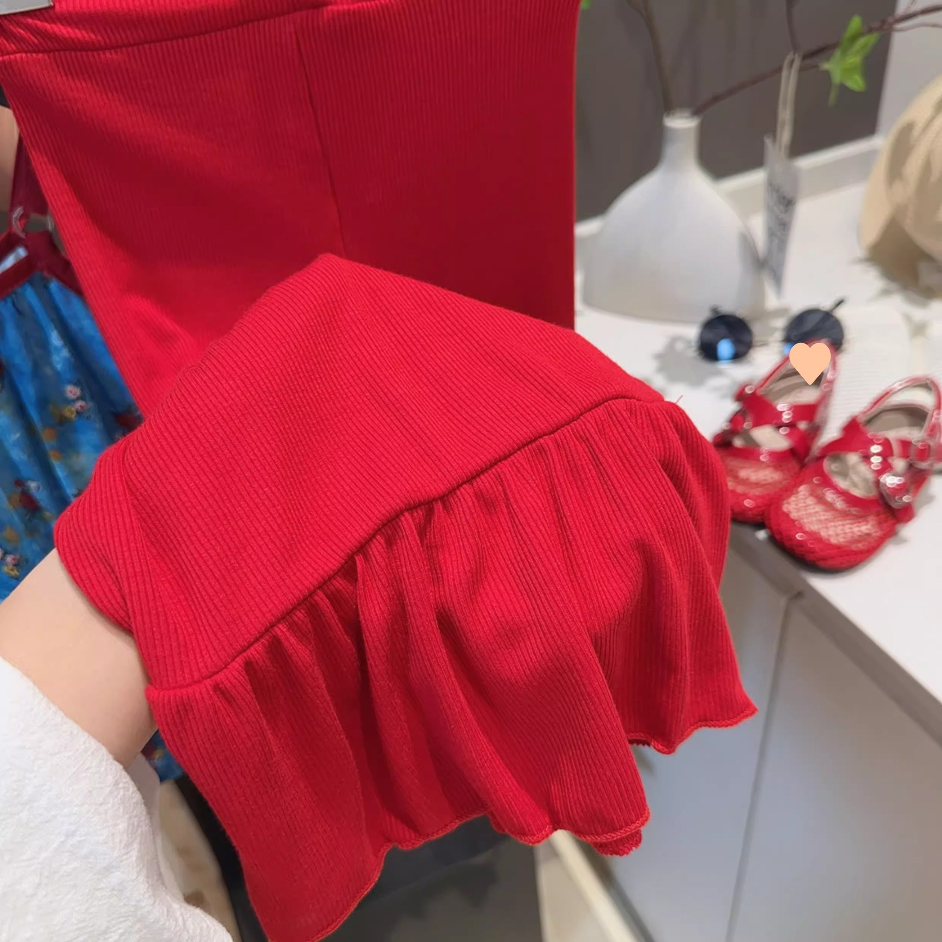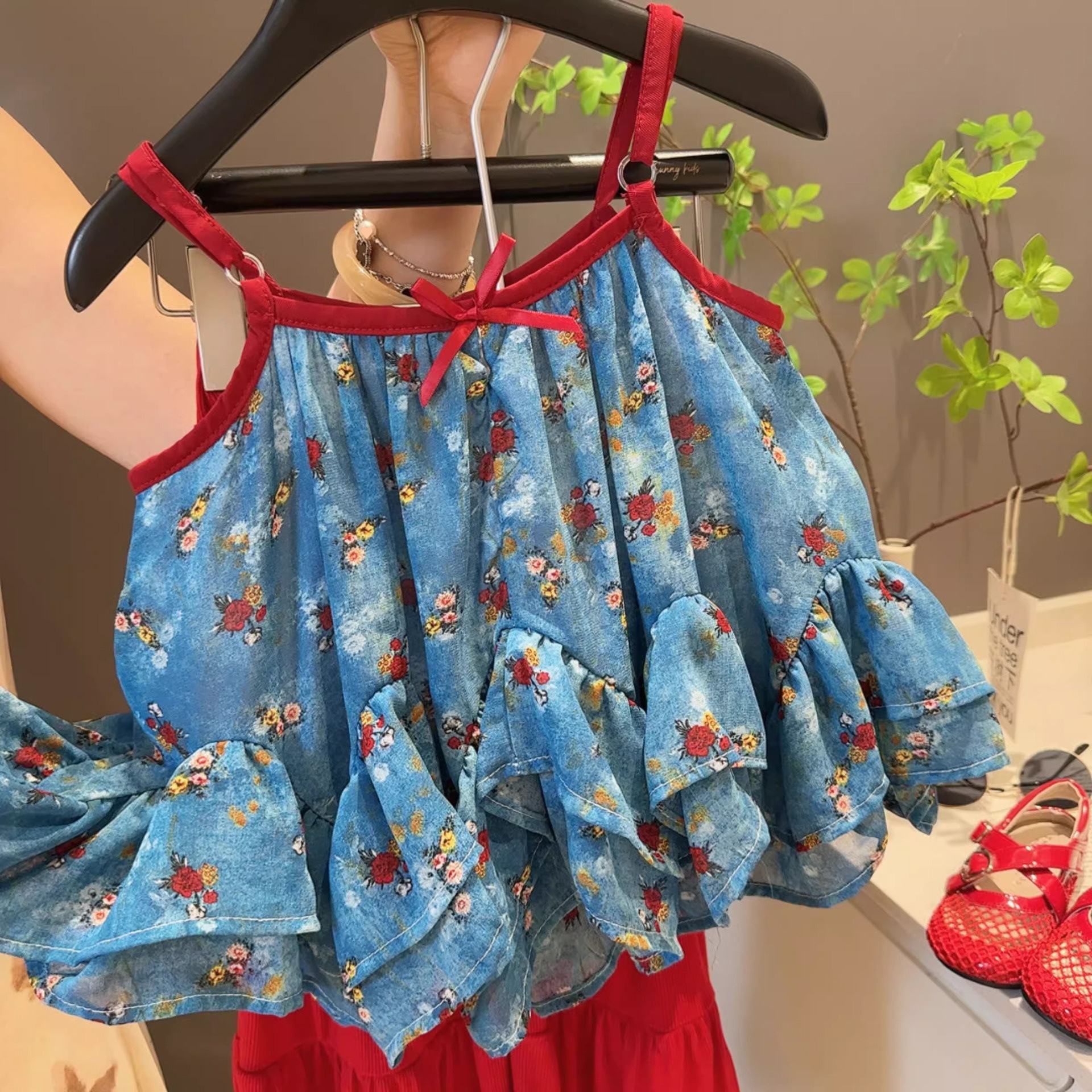여자 여름 휴가 스타일 서스펜더 슈트 2025 새로운 어린이 베이비 쉬폰 프릴 탑 마이크로 플레어 바지 한국어스토어 가기