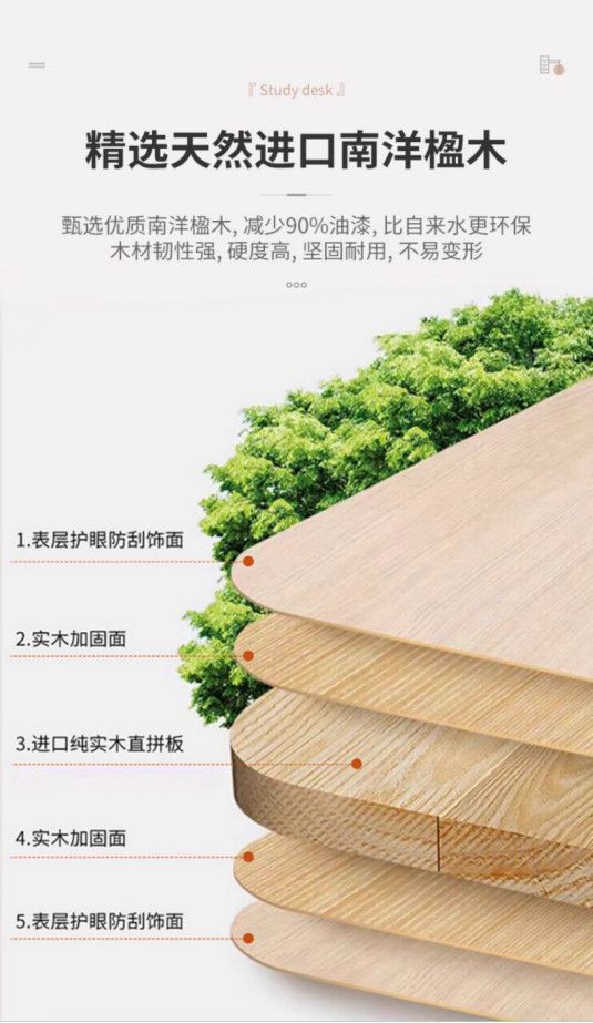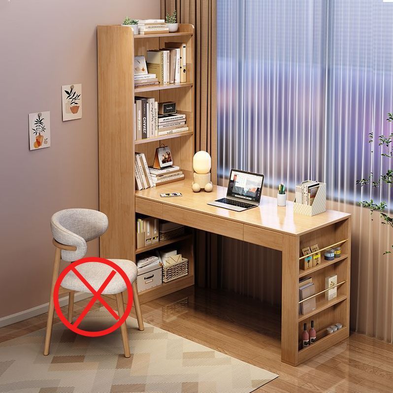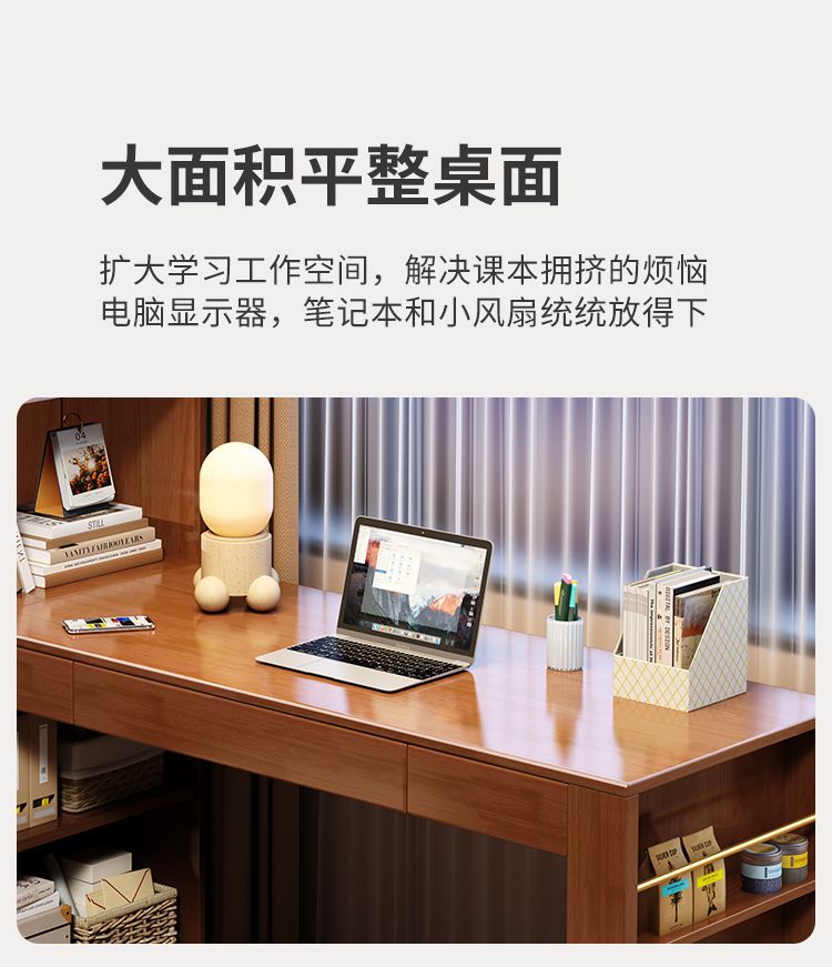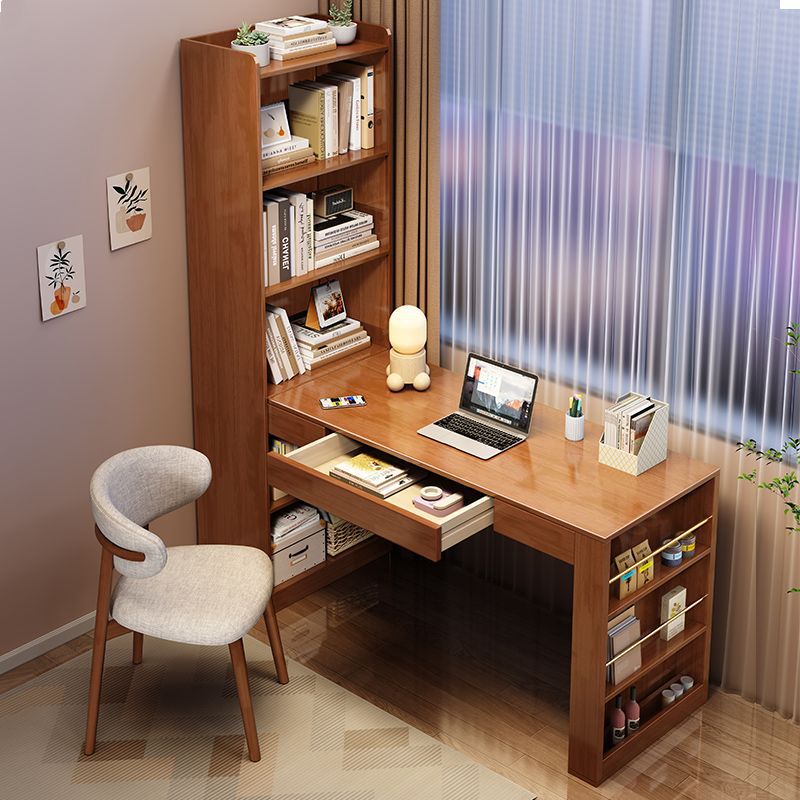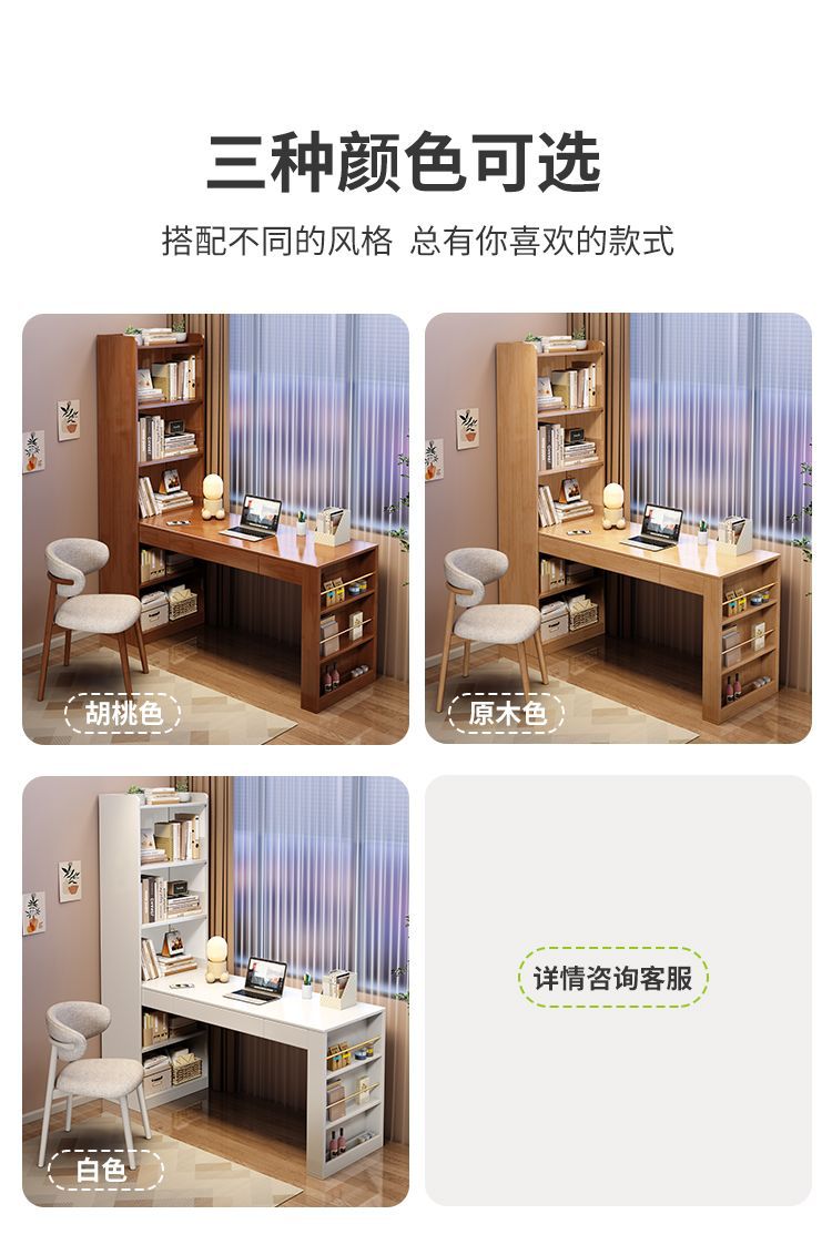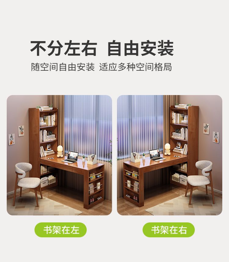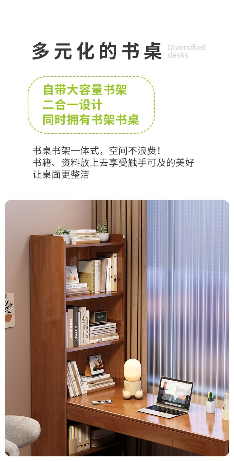 책장이있는 Congliang 단단한 나무 책상, 일체형 학생 학습 테이블, 간단한 현대 가정용 책상, 침실 컴퓨터 테이블