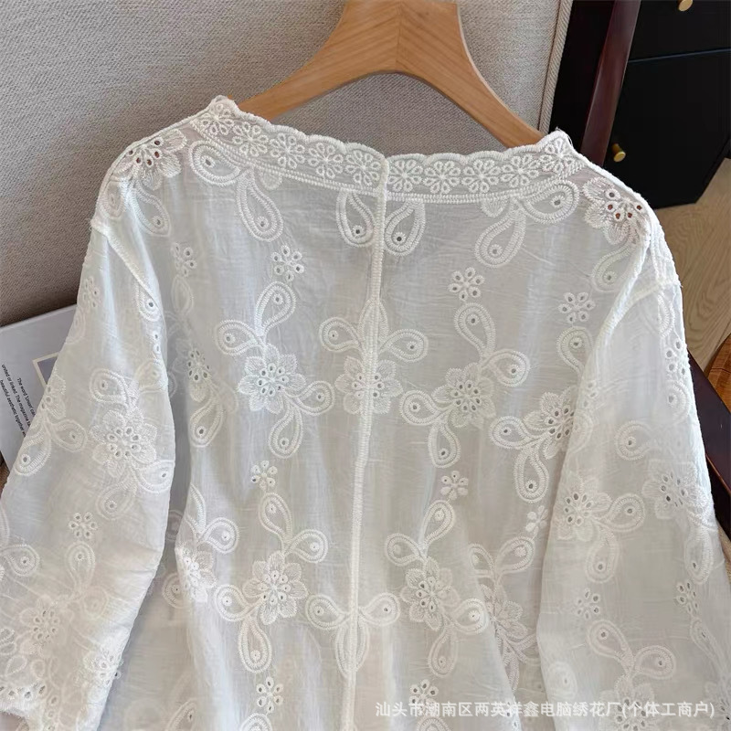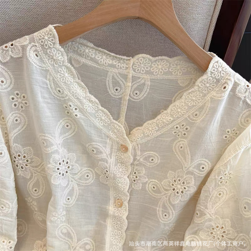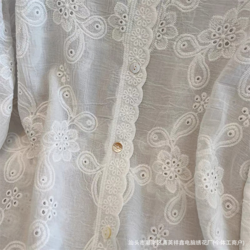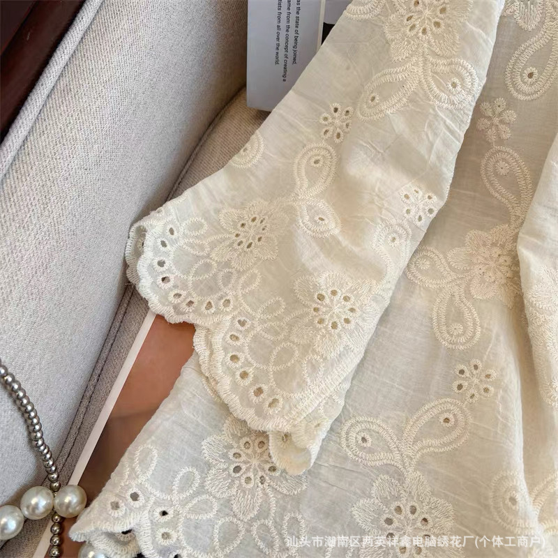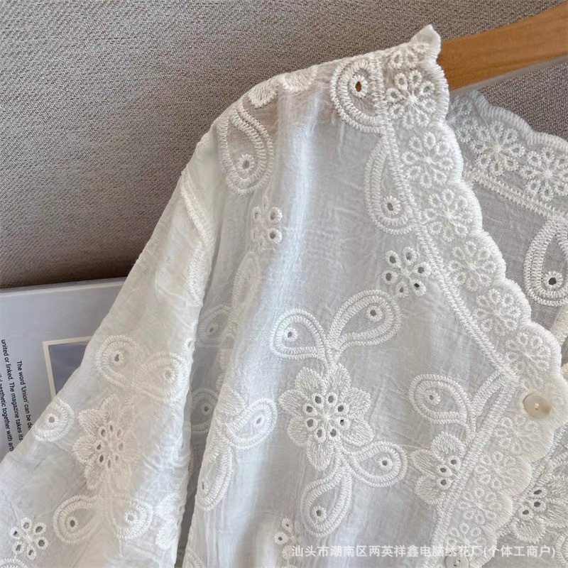厂家生产直销,衣服因为是刺绣钩花成衣会有少许线头毛边,剪掉就好了,正所谓无线不成衣,介意者慎拍。面料100%棉 衣服尺码手工测量会有1-3CM误差,属于正常情况。 衣服衣长:58cm 袖长:38cm 胸围:54cm