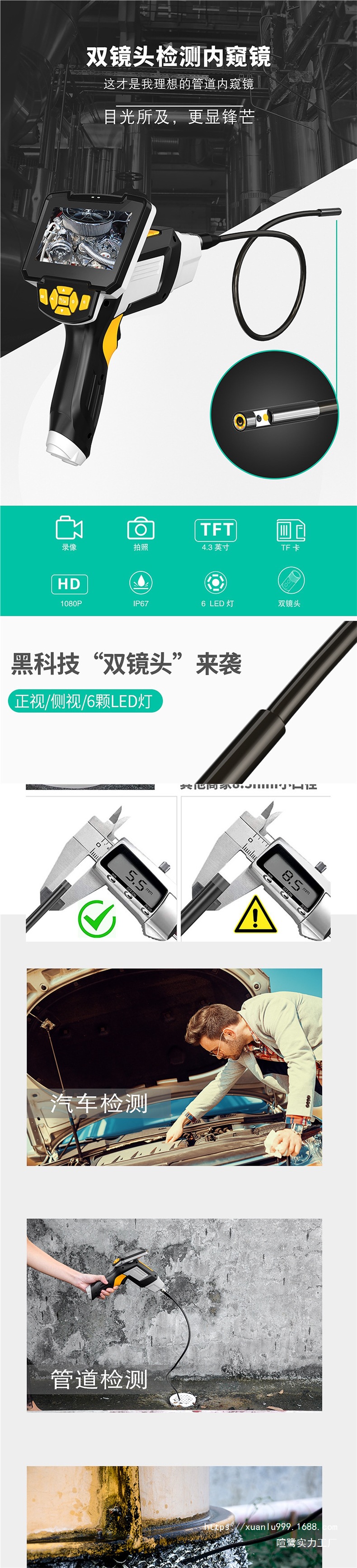 신제품 inskam112-2 듀얼 렌즈 조향 가능 산업용 내시경 자동차 파이프라인 유지 보수 내시경스토어 가기