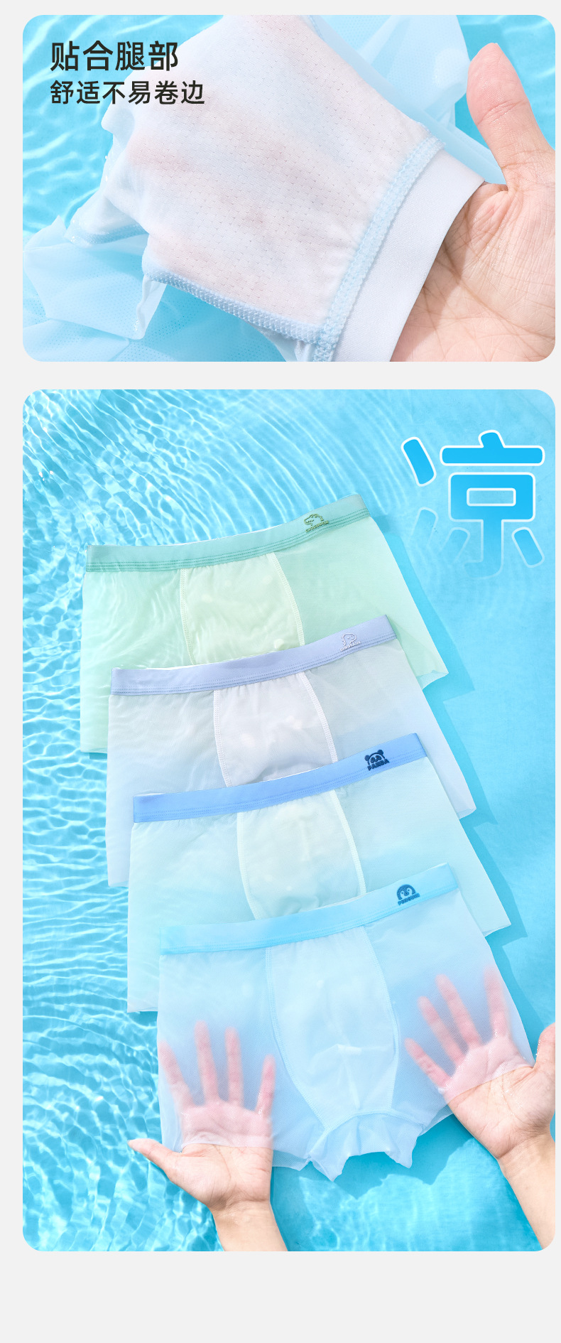 남아용 속옷, 아동용 클래스 A 아이스 실크 여름 얇은 남아용 및 초등학생용 심리스 복서 팬티