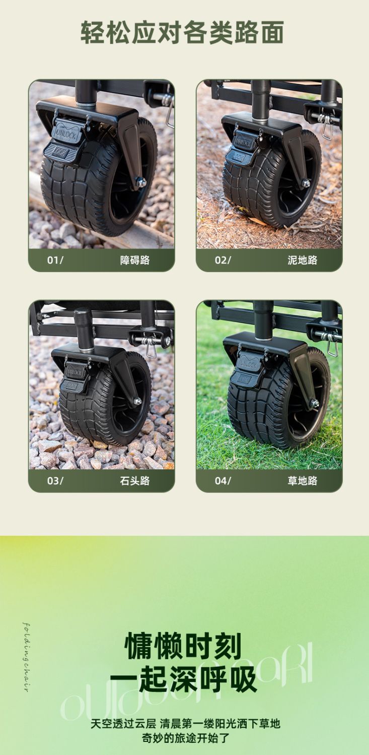 • [카키] 더블 레이어 900D 옥스포드 천-XL/ 8inch 베어링 오프로드 휠/더블 브레이크 + 탄소강 테이블