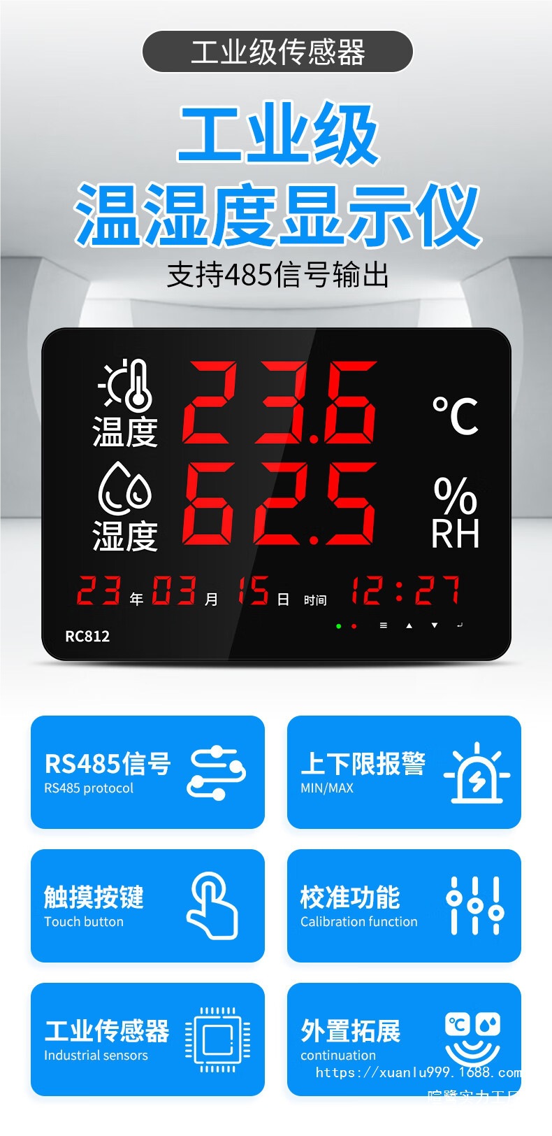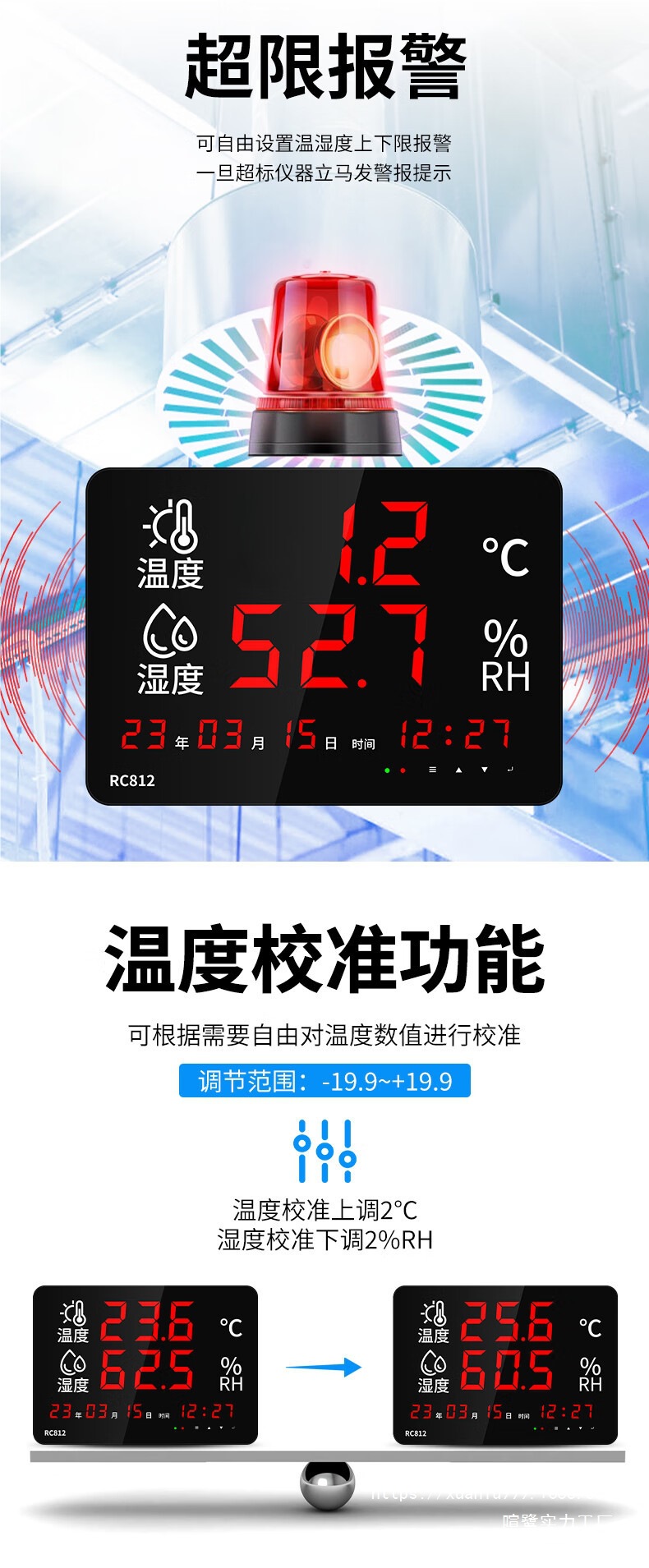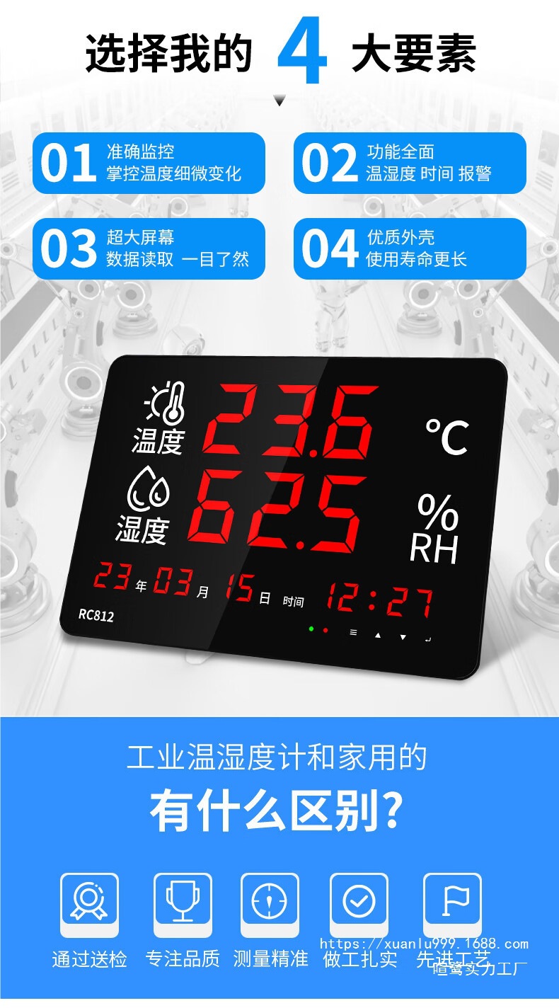 산업용 고정밀 벽걸이 형 온도 및 습도 측정기 공장 대형 스크린 디지털 디스플레이 온도 및 습도 측정기 실내 RC812스토어 가기