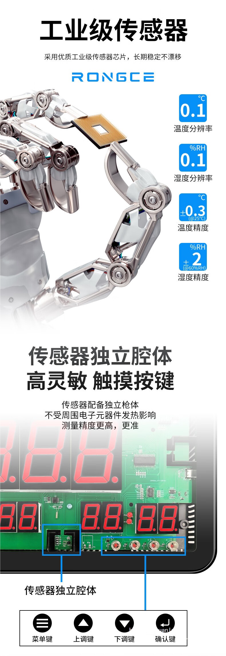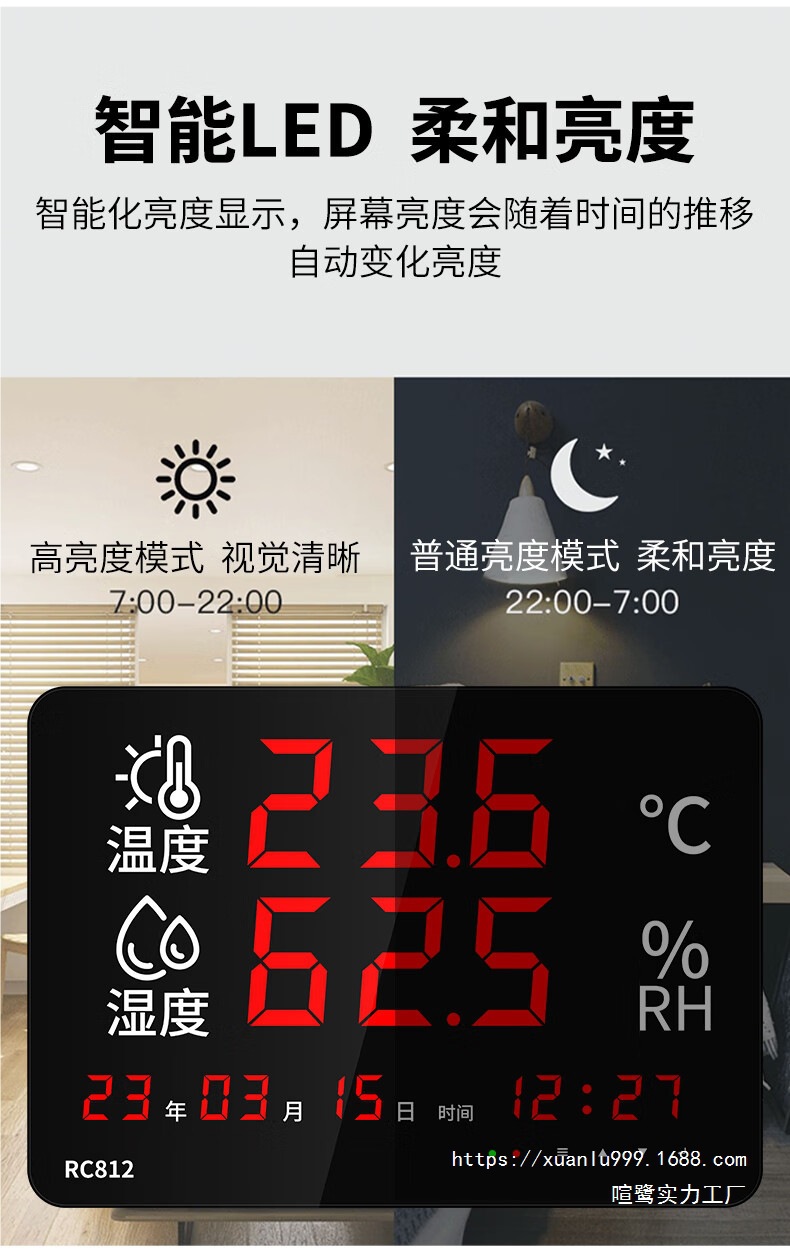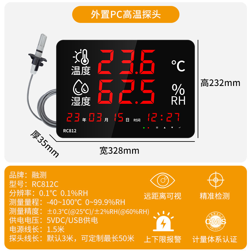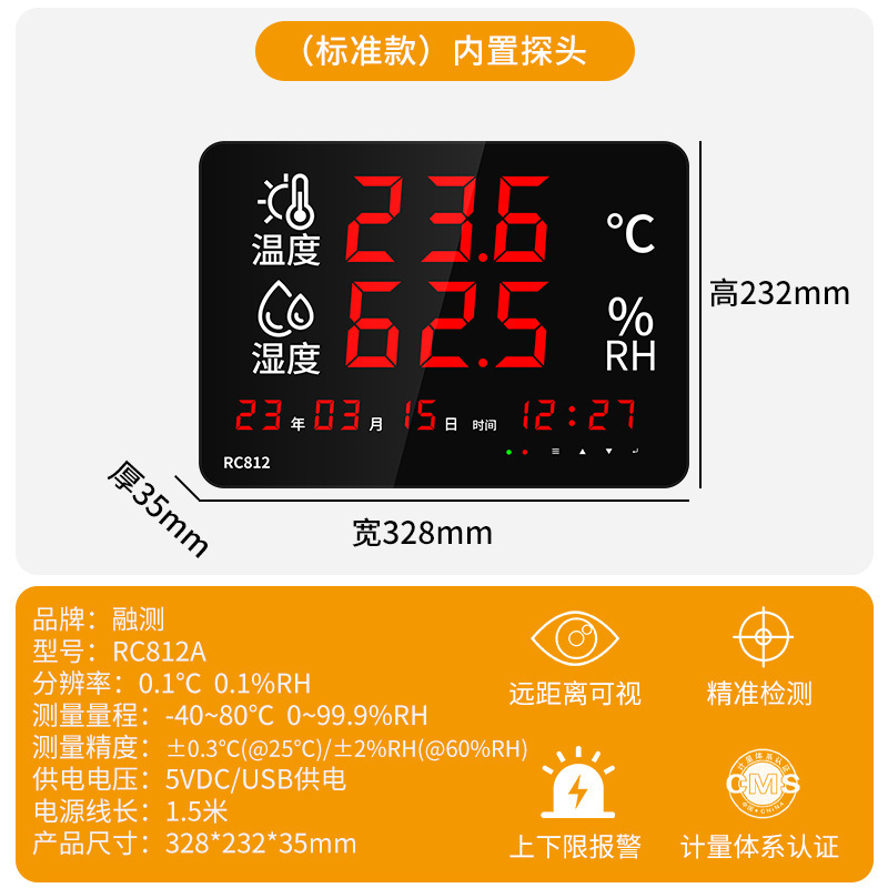 산업용 고정밀 벽걸이 형 온도 및 습도 측정기 공장 대형 스크린 디지털 디스플레이 온도 및 습도 측정기 실내 RC812스토어 가기