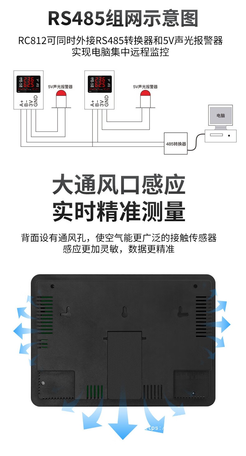 • RC812 [F형] 외부 5V 소리 및 빛 경보(온도 측정 -40~80)