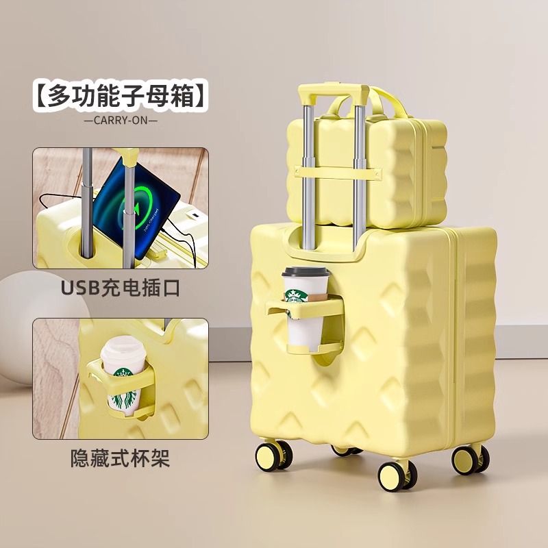 여행 가방 소형 경량 여성 2025 새로운 20 인치 18 탑승 여행 트롤리 비밀번호 가죽 가방 미니 번호스토어 가기