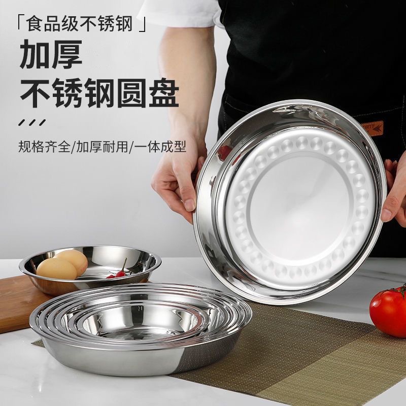 스테인레스 스틸 원형 접시 410 접시 두꺼운 깊은 접시 캔틴 레스토랑 가정용 접시 과일 접시 바베큐 접시 트레이