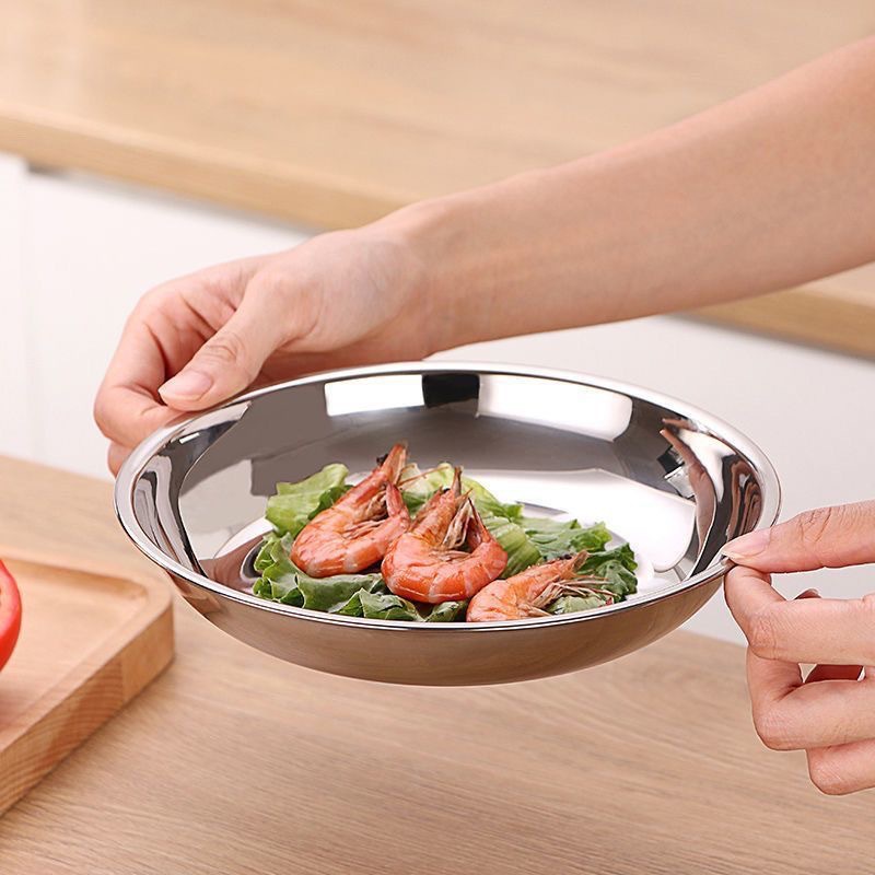 스테인레스 스틸 원형 접시 410 접시 두꺼운 깊은 접시 캔틴 레스토랑 가정용 접시 과일 접시 바베큐 접시 트레이스토어 가기