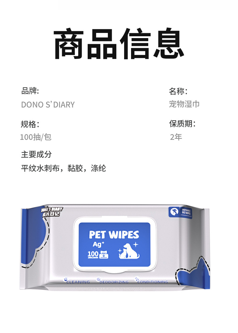 성장일기 애완동물 물티슈 고양이와 강아지 물티슈 청소 노워시 눈물자국 물티슈 DONO'S DIARY