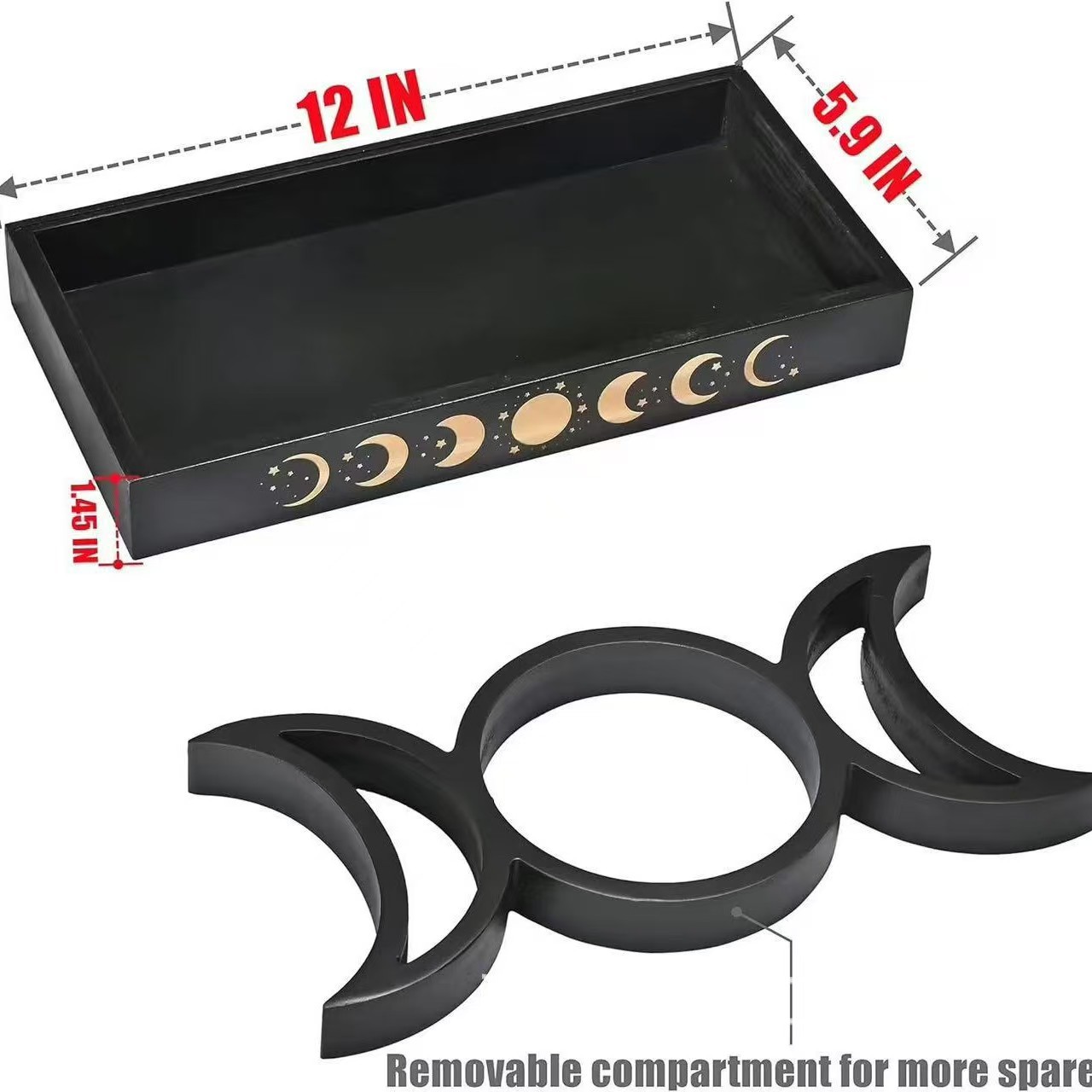 나무 타로 카드베이스 문 크리스탈 트레이 홈 인테리어 이동식 카드 홀더 단단한 나무 장식 트레이