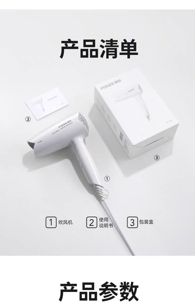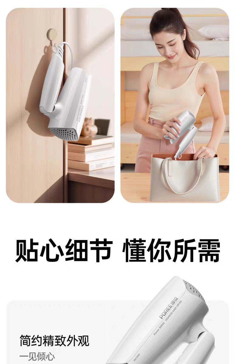헤어드라이어 PH1608 소형 가정용 저전력 속건 헤어케어 기숙사 학생용 헤어드라이어 접이식스토어 가기