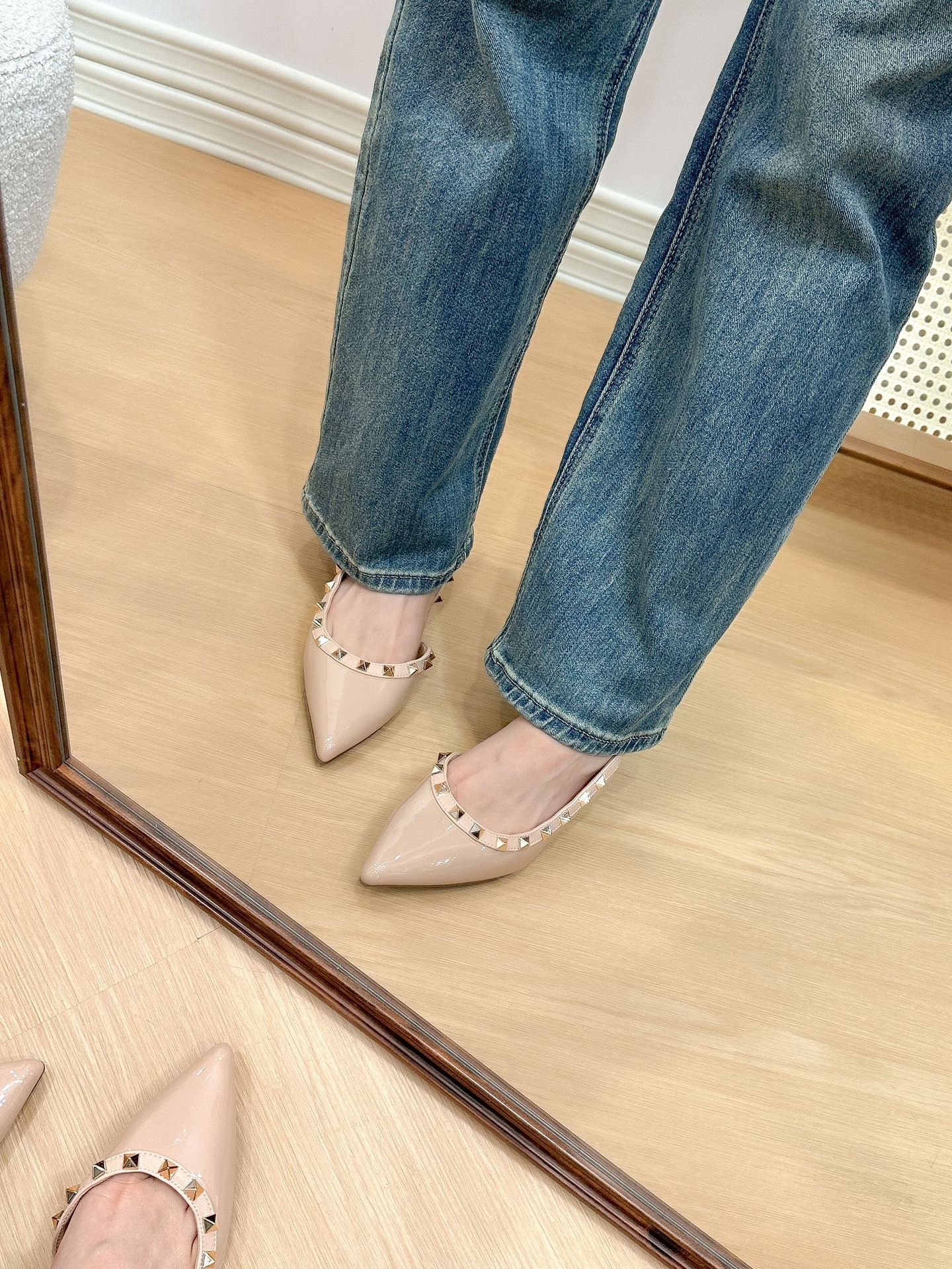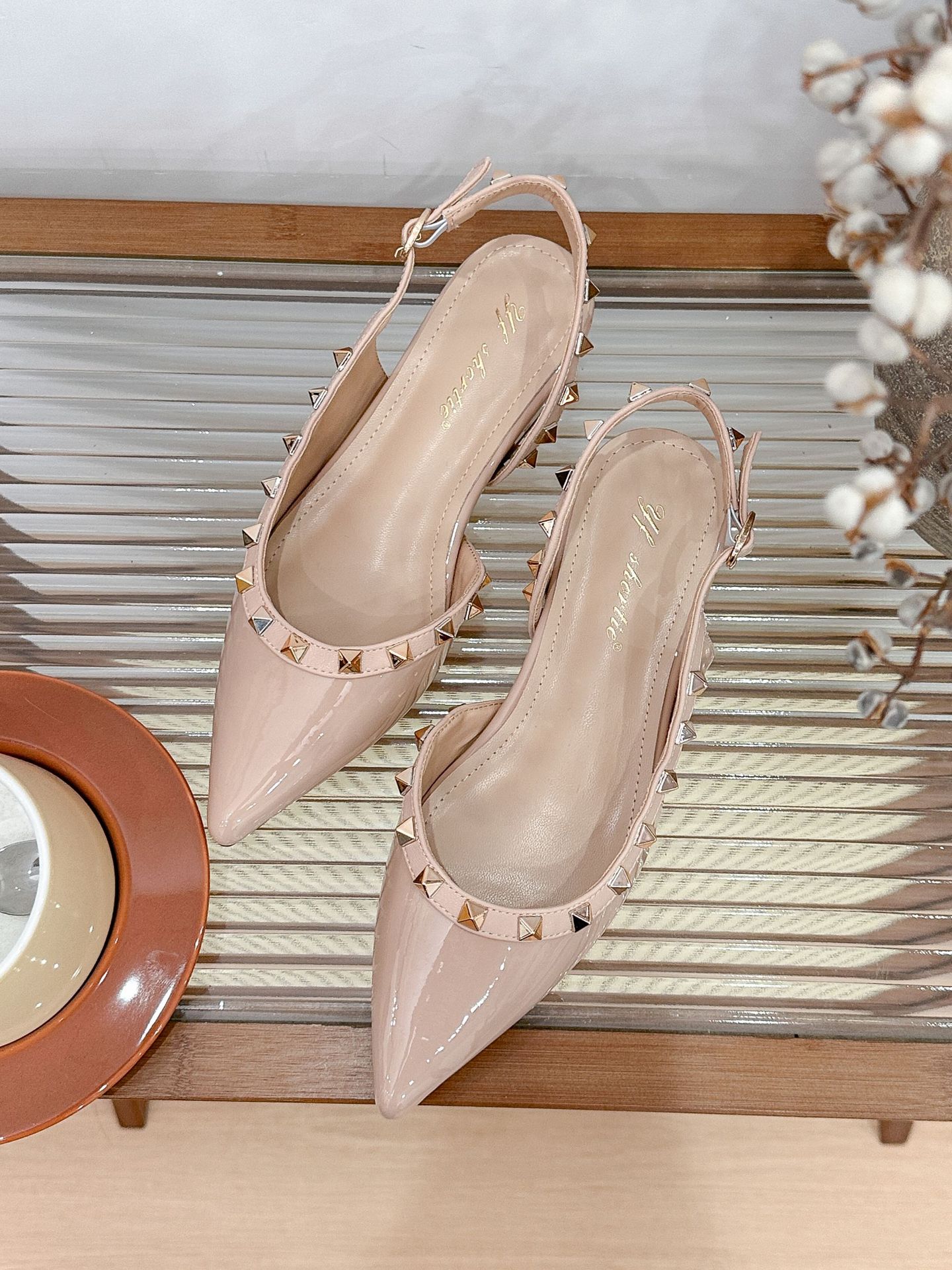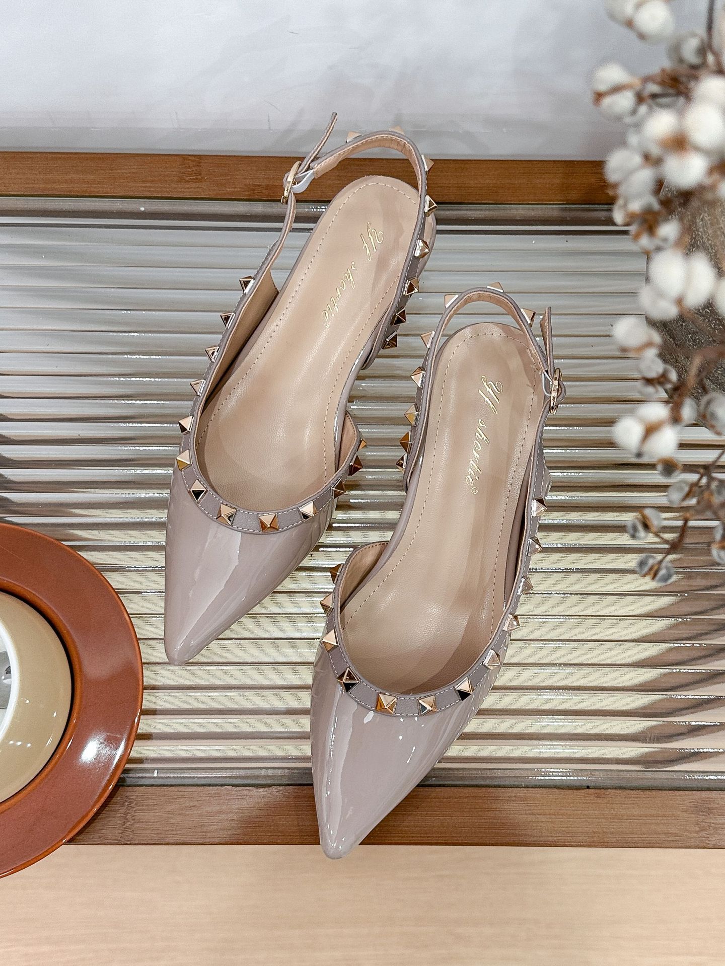 높이가 5cm 증가한 여성용 페이턴트 가죽 리벳 웨지 샌들 2025 여름 신상 섹시한 뾰족한 뒷끈 슬리퍼스토어 가기