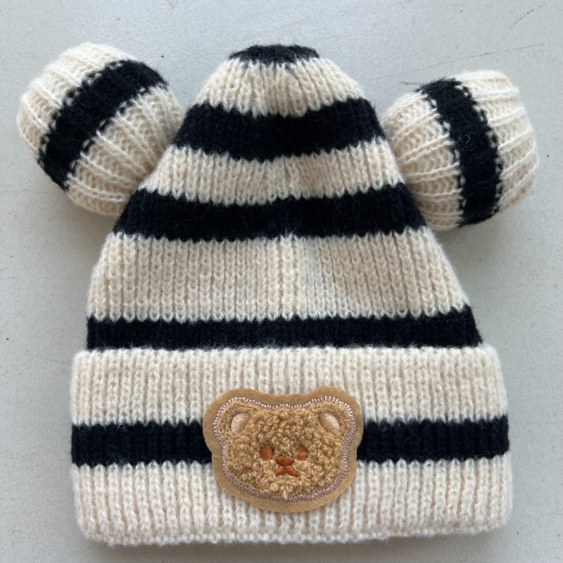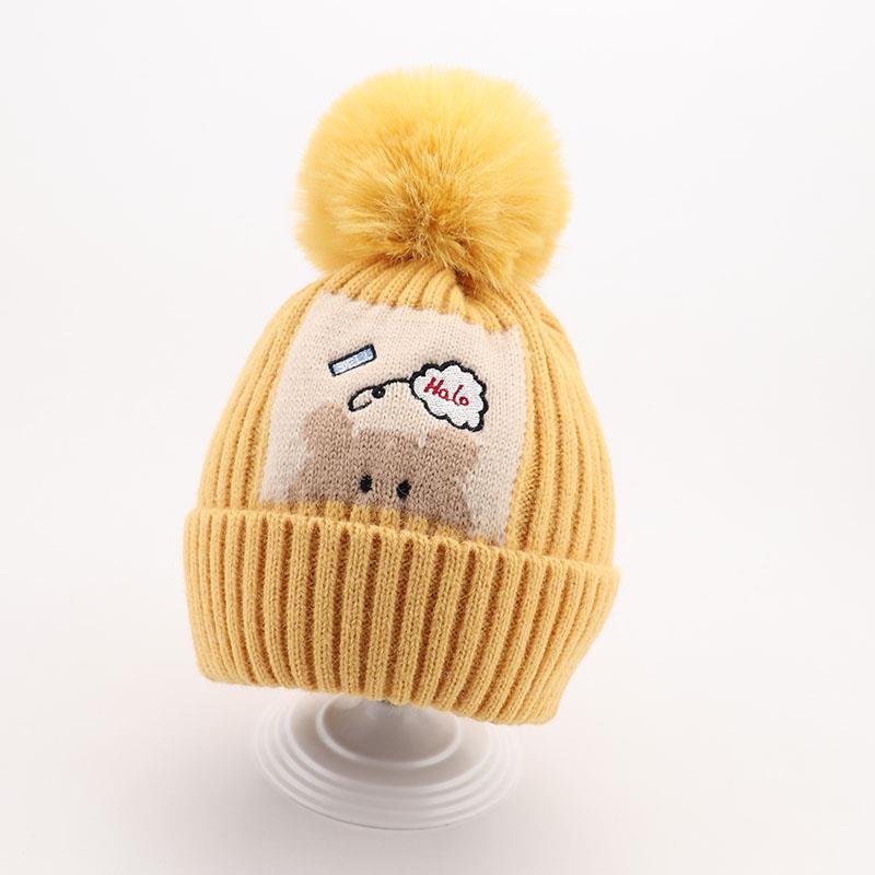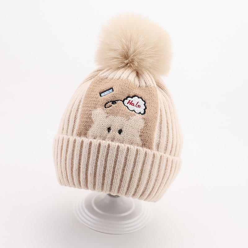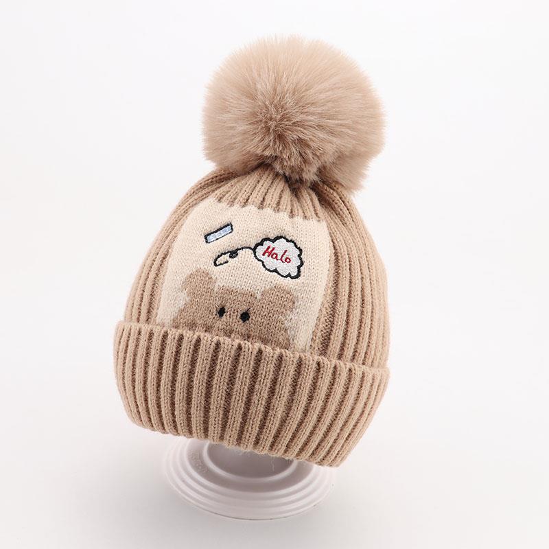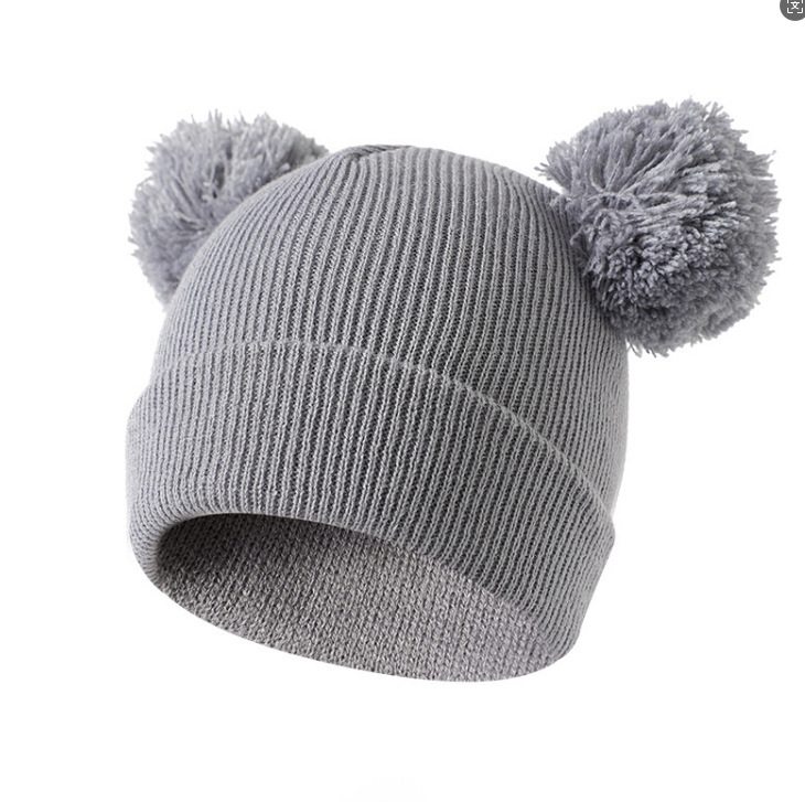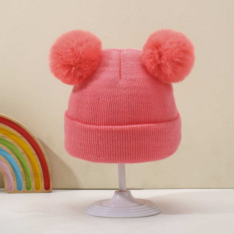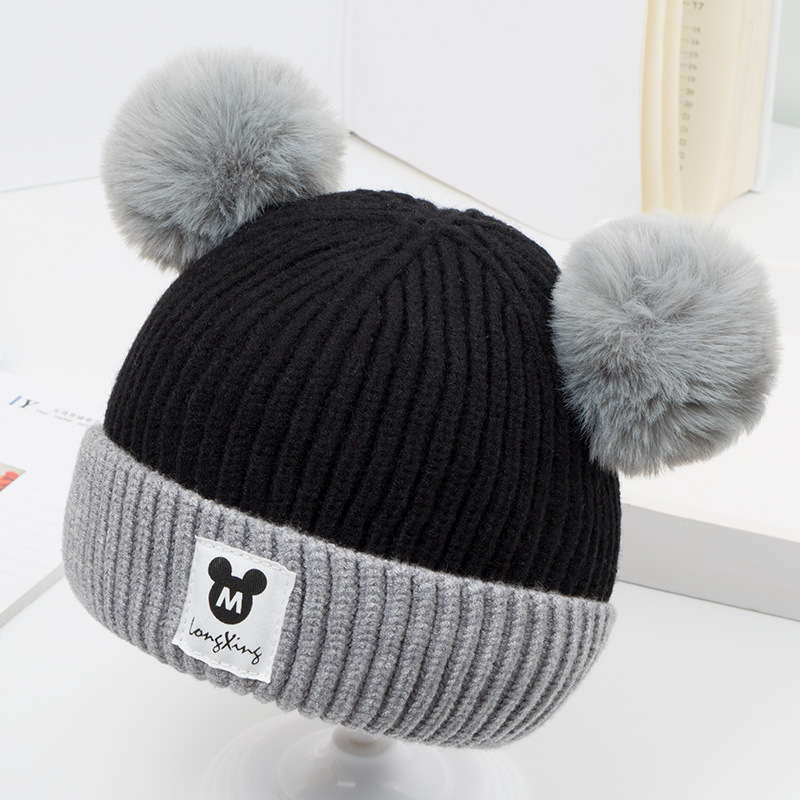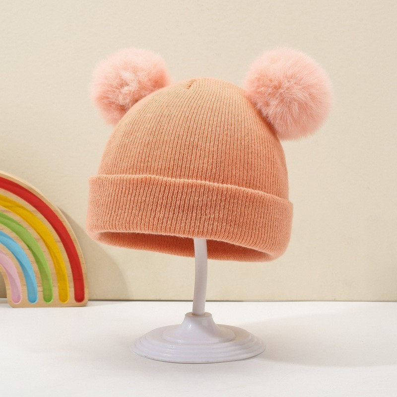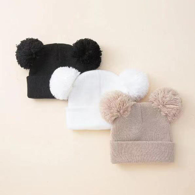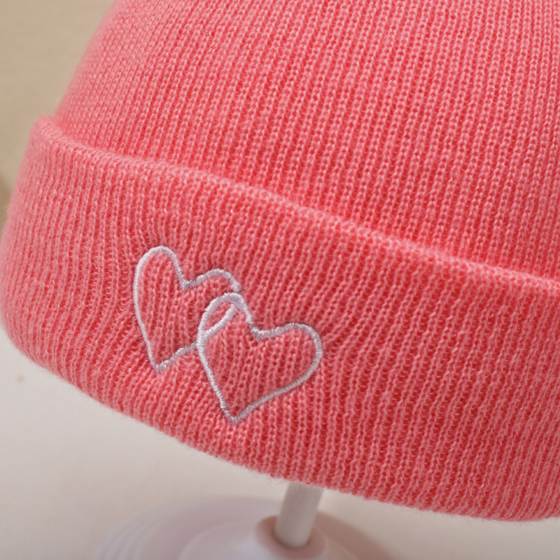귀여운 아기 니트 모자, 더블 러브 자수, 더블 폼폼 모직 모자, 아기의 편안하고 피부 친화적인 따뜻하고 추운 모자스토어 가기