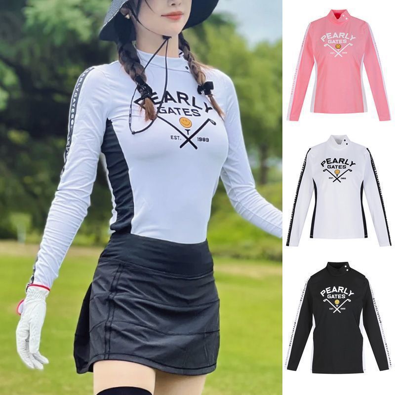 한국 골프 의류 여성용 긴팔 스포츠 속건성 통기성 슬림 스트레치 다용도 프린트 티셔츠 라운드 넥 골프 유니폼스토어 가기