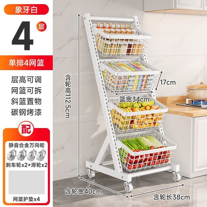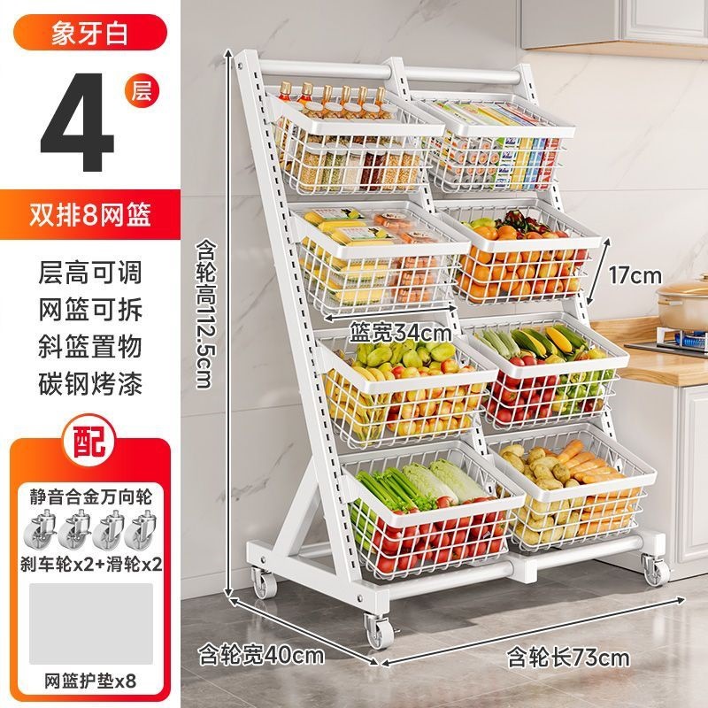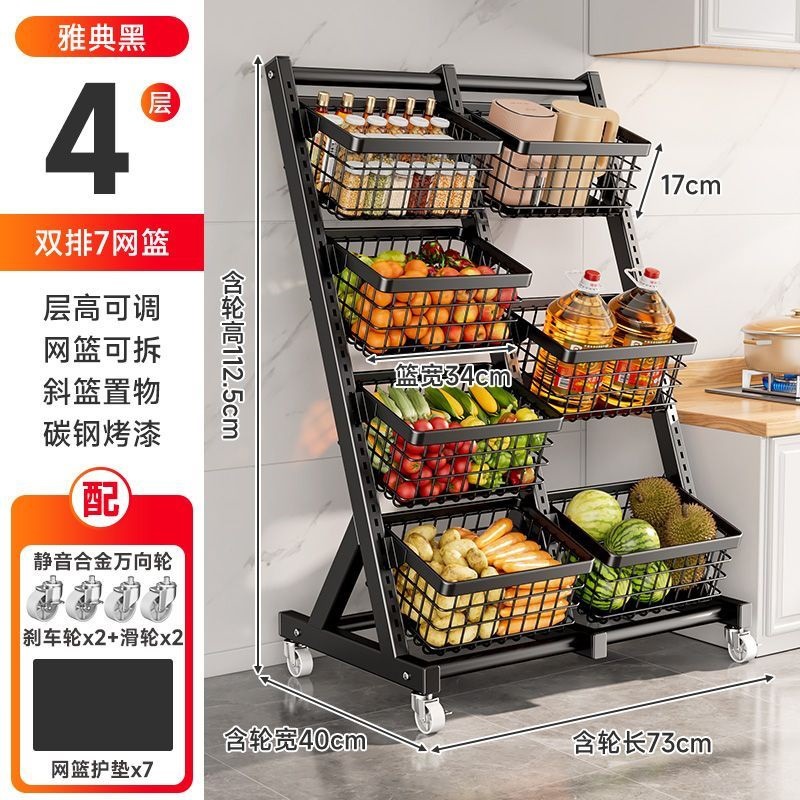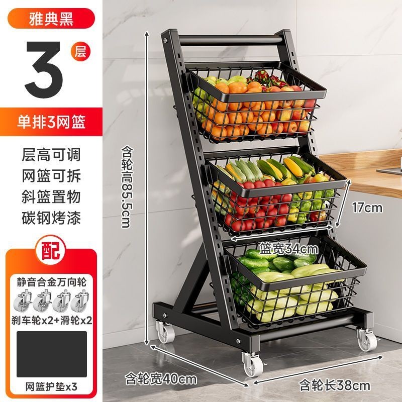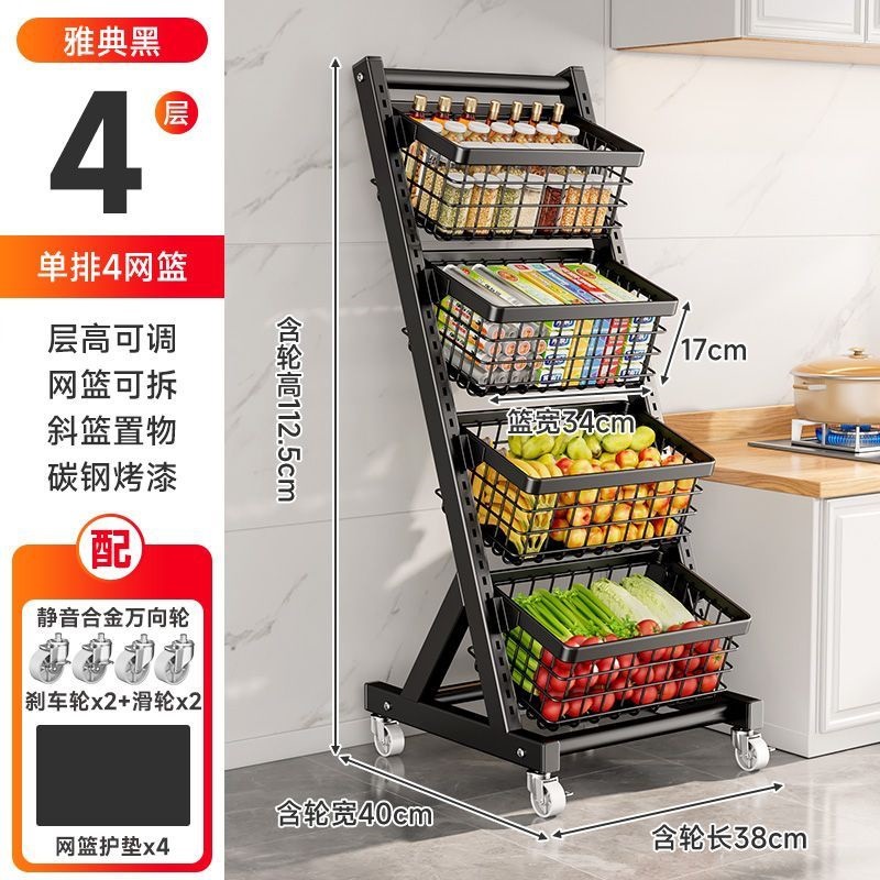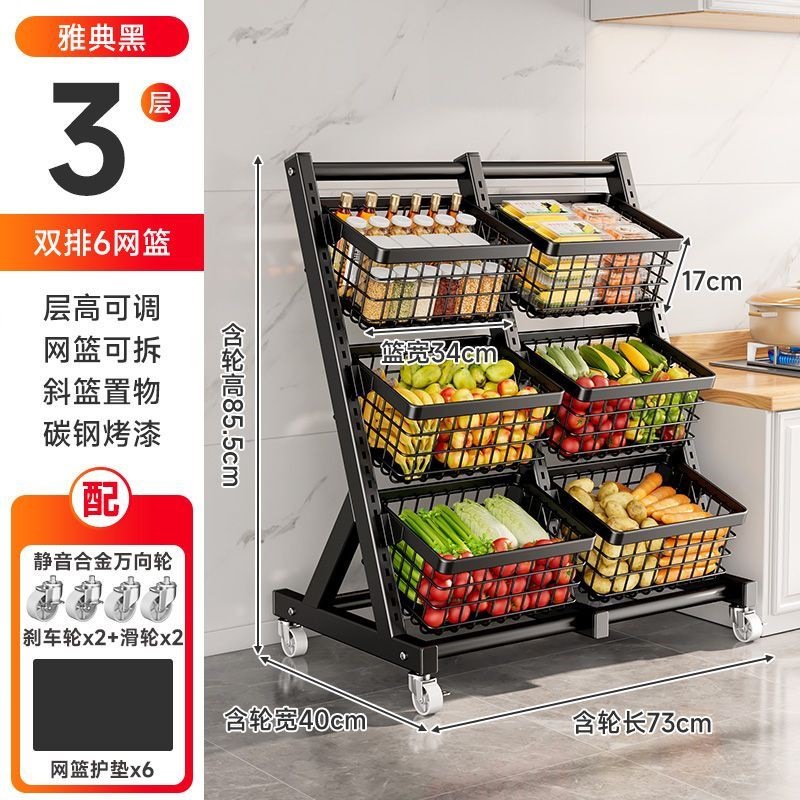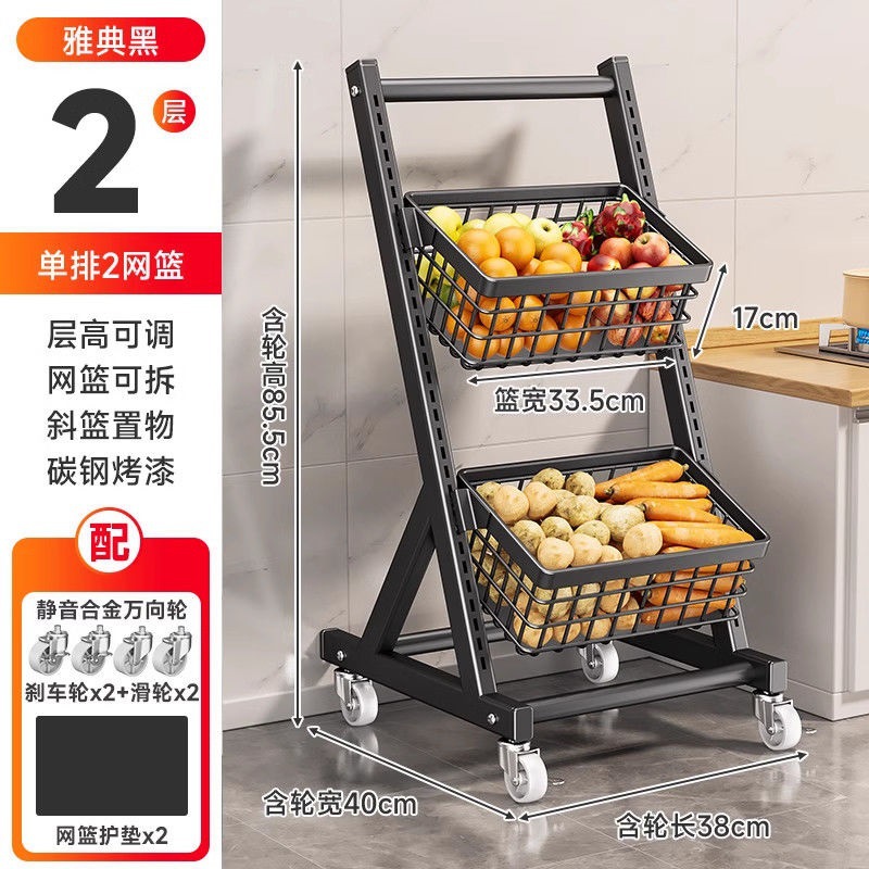 주방 야채 바구니 보관 랙 과일 및 야채 보관을위한 다층 바닥에서 이동식 가정용 다기능 트롤리스토어 가기