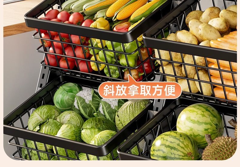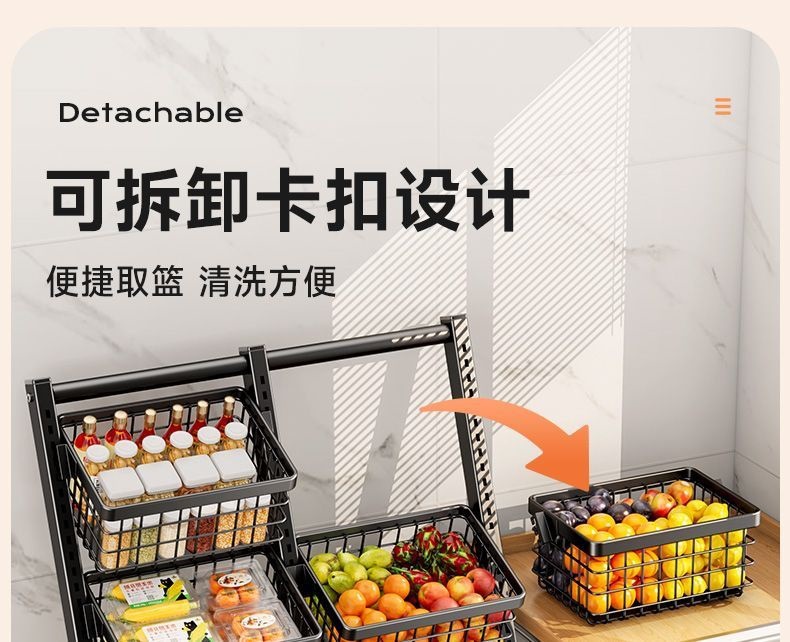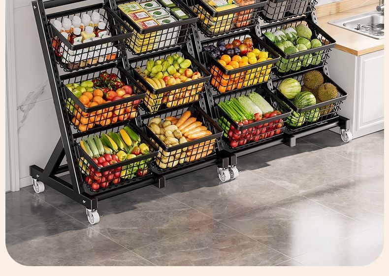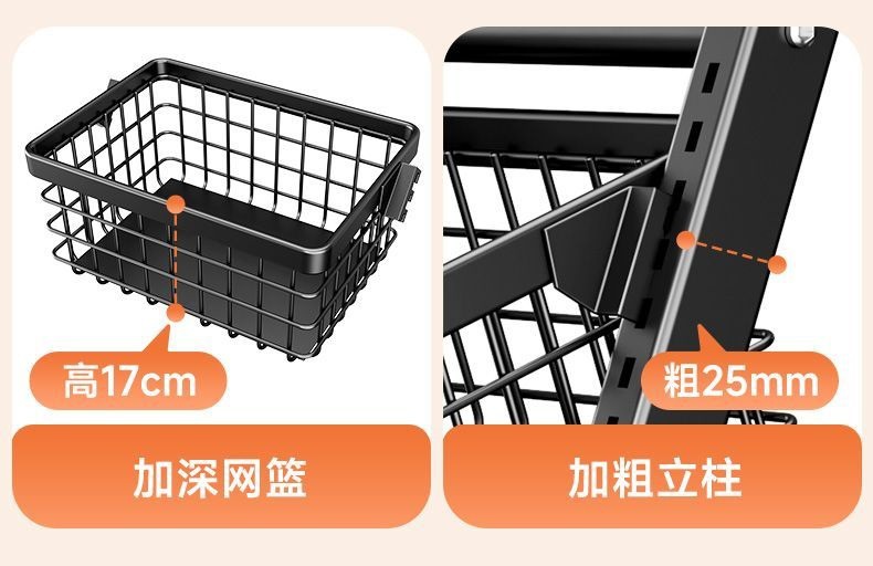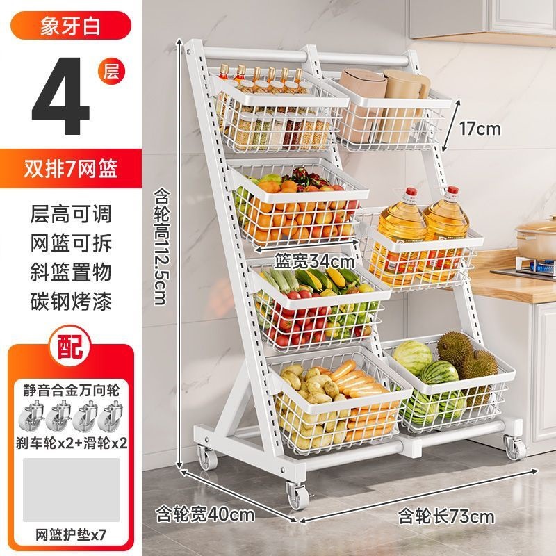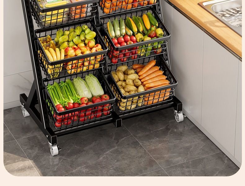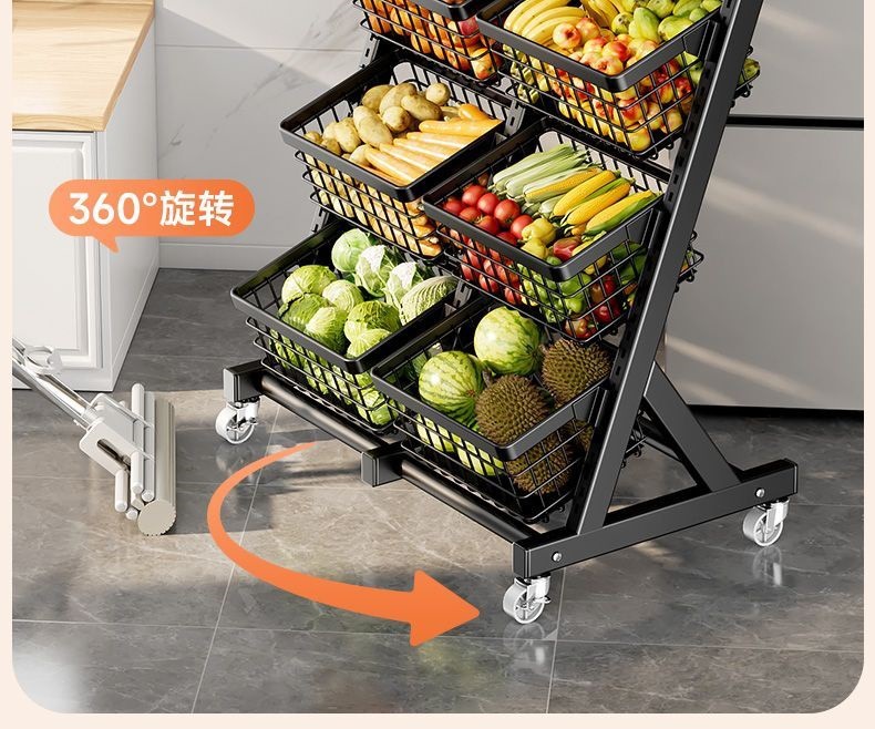 주방 야채 바구니 보관 랙 과일 및 야채 보관을위한 다층 바닥에서 이동식 가정용 다기능 트롤리