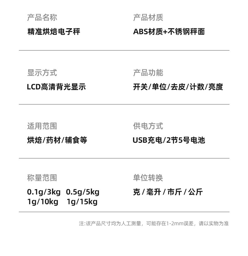 가정용 주방 저울 전자 저울 다기능 베이킹 식품 그램 측정 정밀 LCD 테이블 저울 충전식 스마트