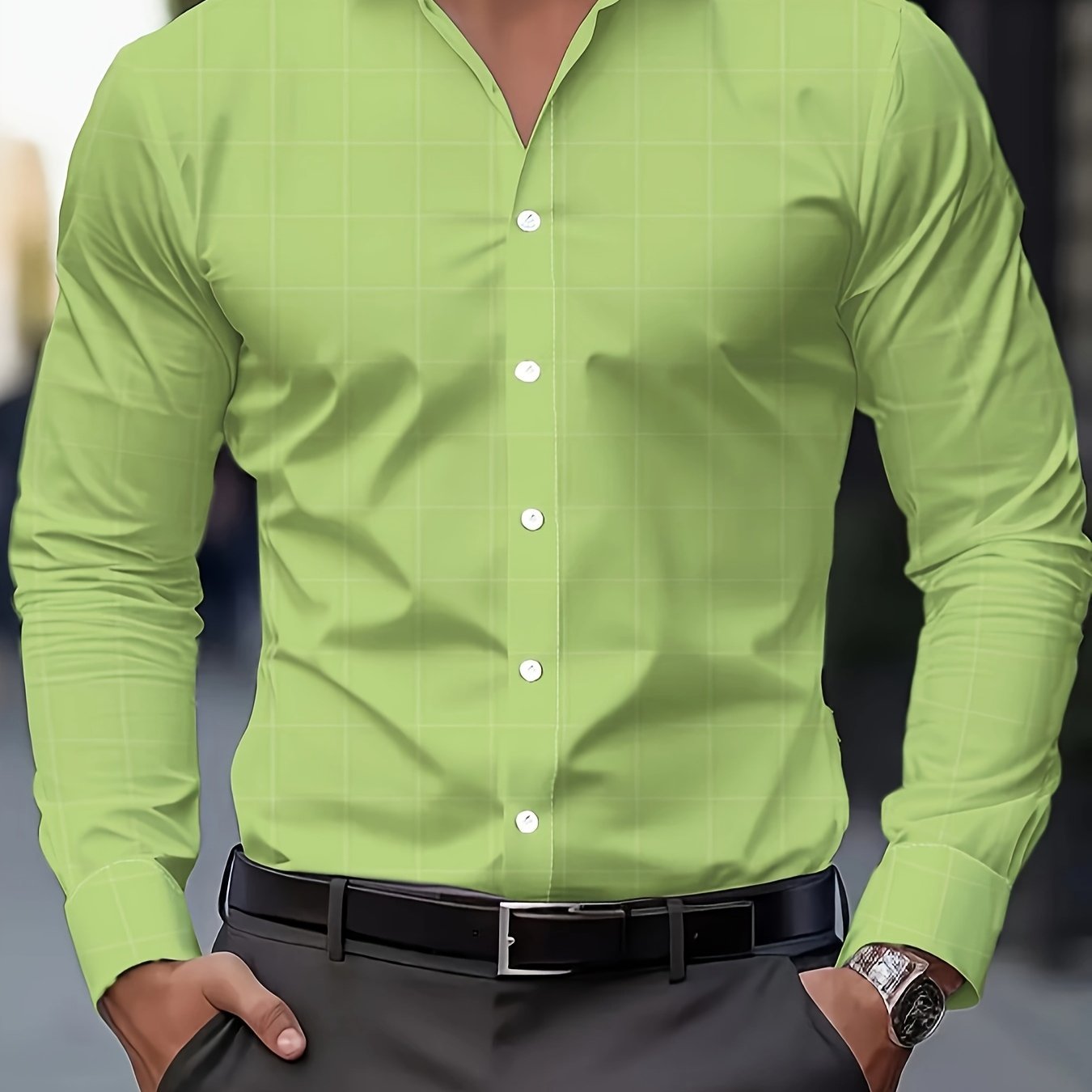 2025 국경 간 새로운 유럽과 미국의 패션 격자 무늬 옷깃 남성 드레스 셔츠 긴 셔츠