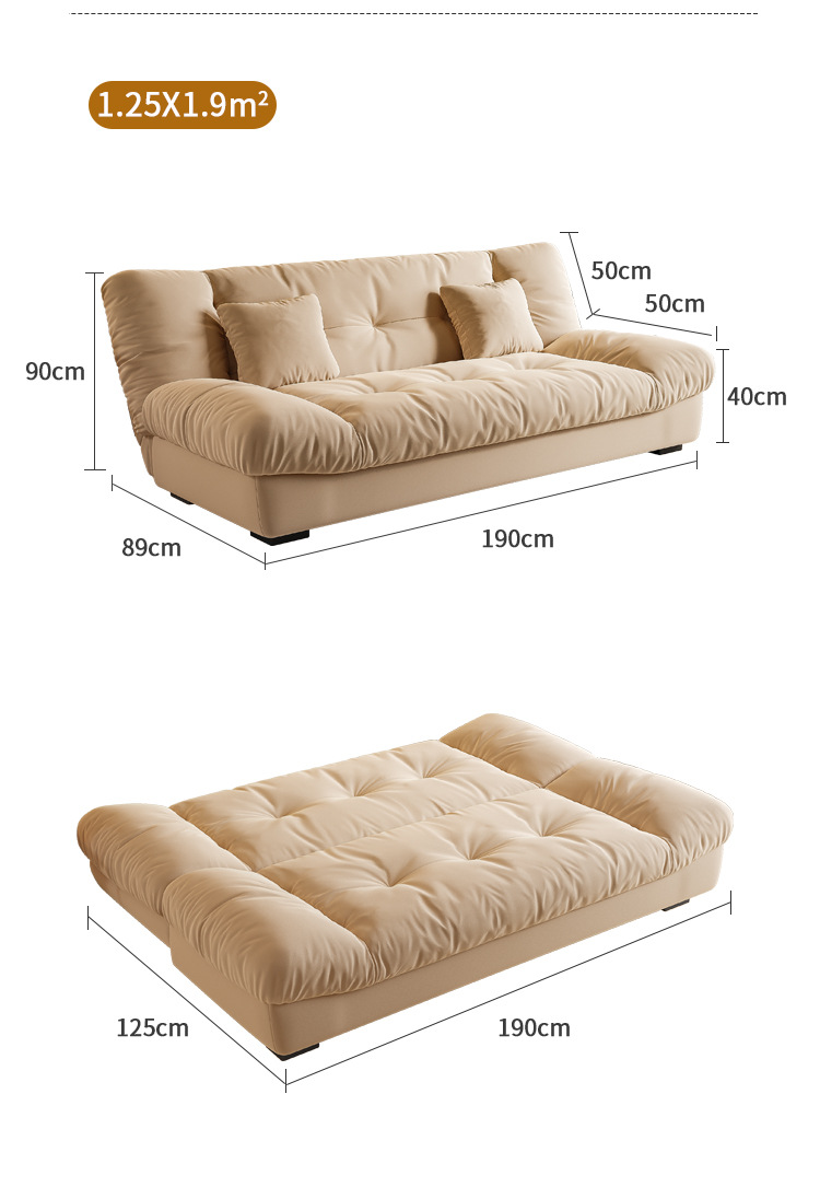 Yunduo 패브릭 소파 베드 접이식 이중 목적 3인용 직선 크림 스타일 거실 작은 아파트 2025 새로운 프랑스 스타일