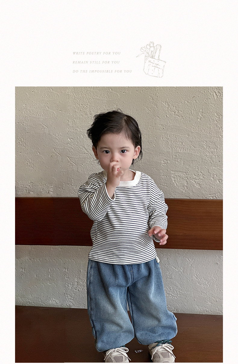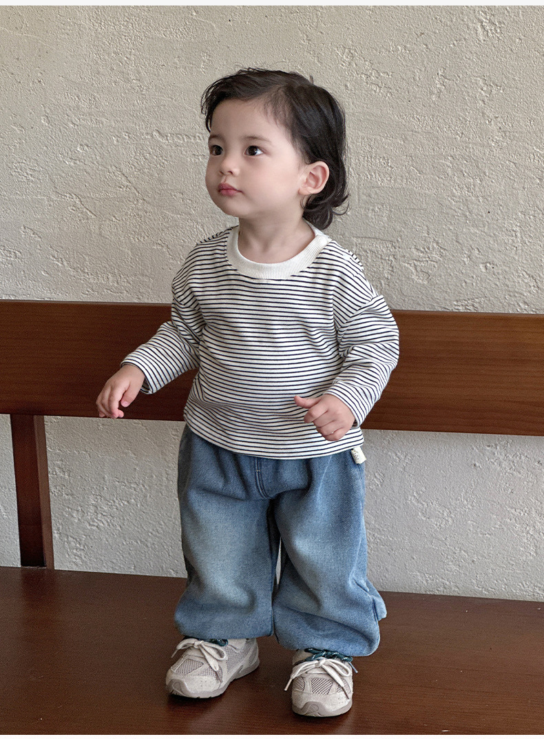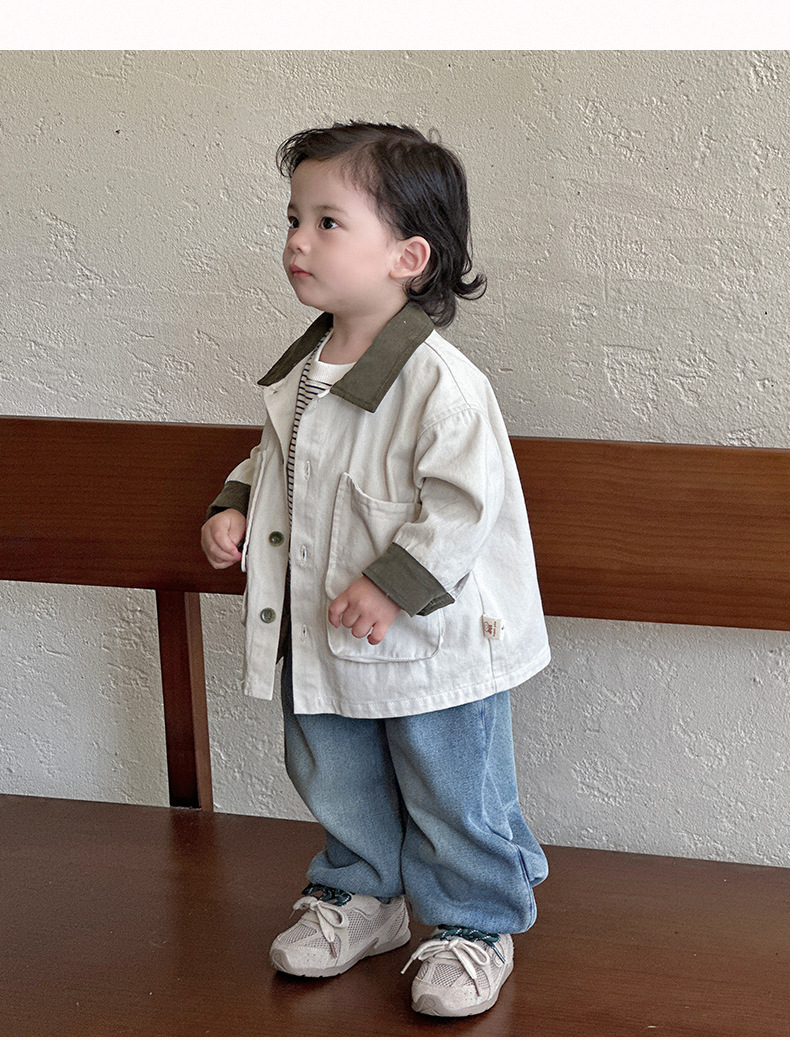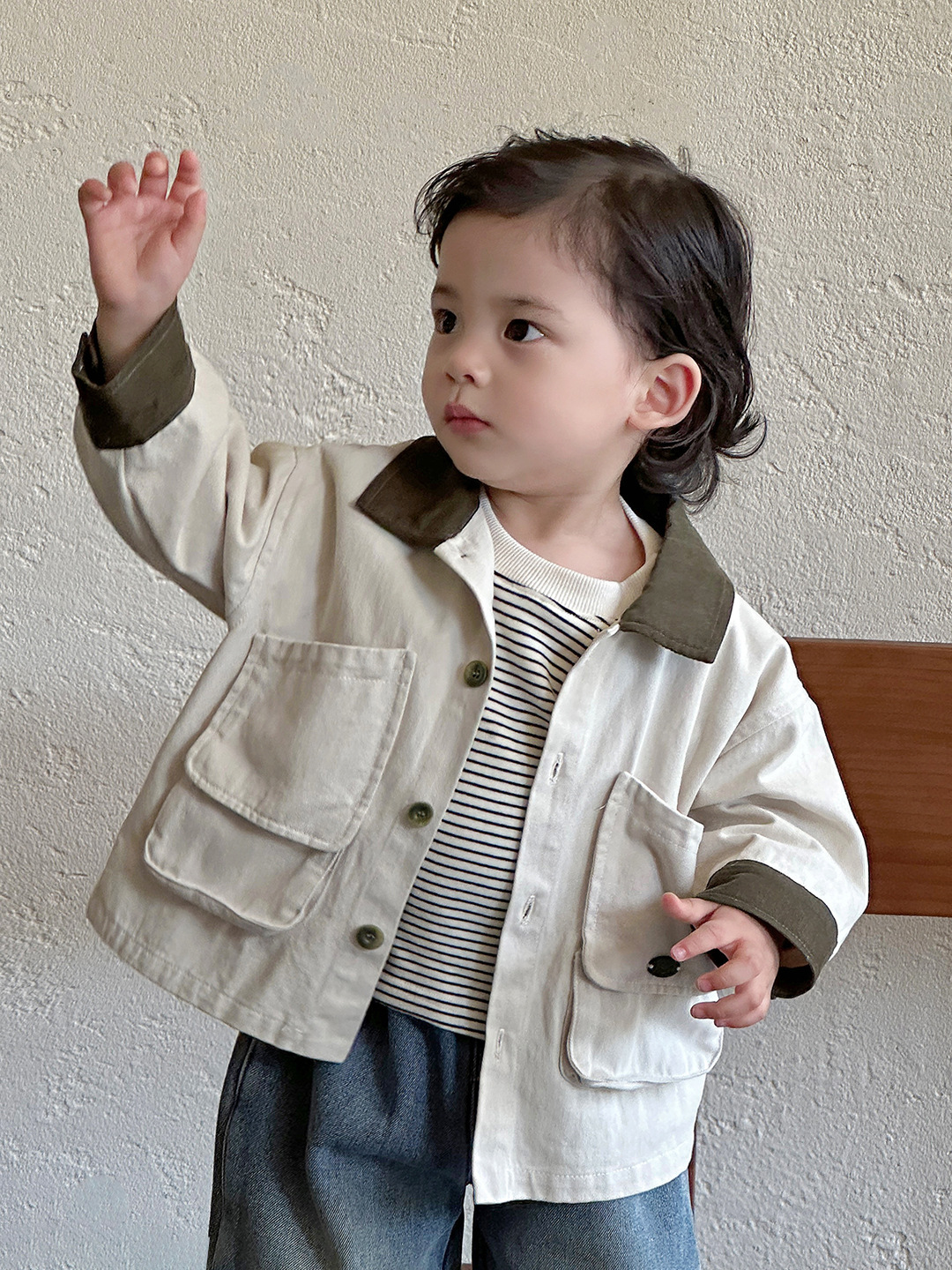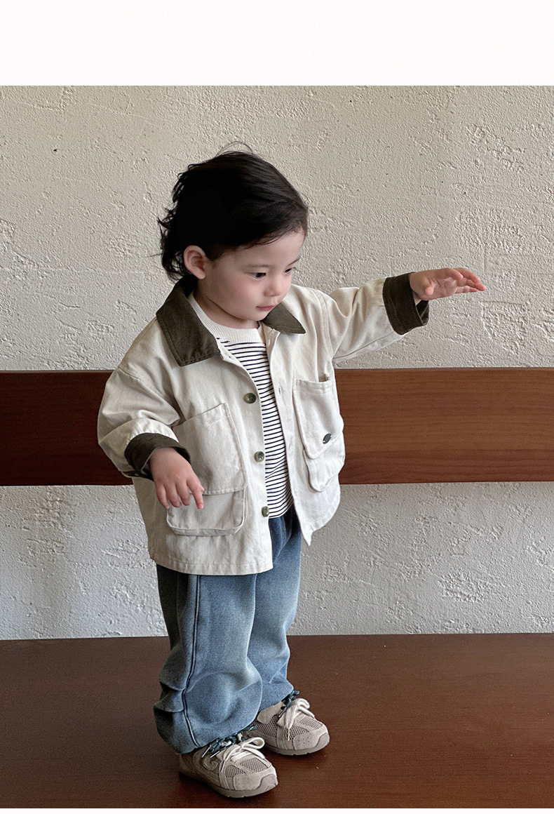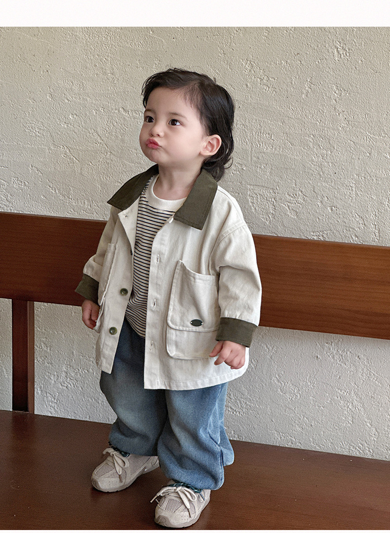 Youhe 아동복 2025 봄, 가을 정장 유아 소년 대형 포켓 코트 청바지 스트라이프 티셔츠 3 피스 세트 3스토어 가기